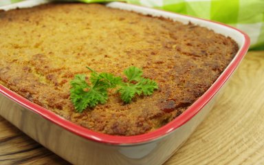 Якщо верх запіканки швидко почне підпікатися, накрий її фольгою не в контакт. А наприкінці приготування зніми фольгу.