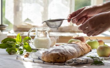 Вертуха — це смачний рулет з пісочного або листкового тіста з різними начинками. Ми приготуємо вертуху з пісочного тіста з яблуками та корицею. З даної кількості інгредієнтів вийде дві пісочні вертухи. Цей апетитний рецепт для тих, хто любить просту і швидку випічку з яблуками.