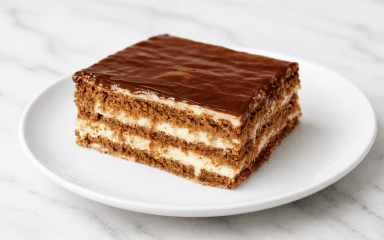 Нове поповнення улюблених тортів без випікання. Шоколадно-банановий торт складається із шоколадного печива, двох бананів і крему з молока, масла та яєць. На бажання можна прикрасити його шоколадною глазур’ю або просто посипати крихтою з печива.