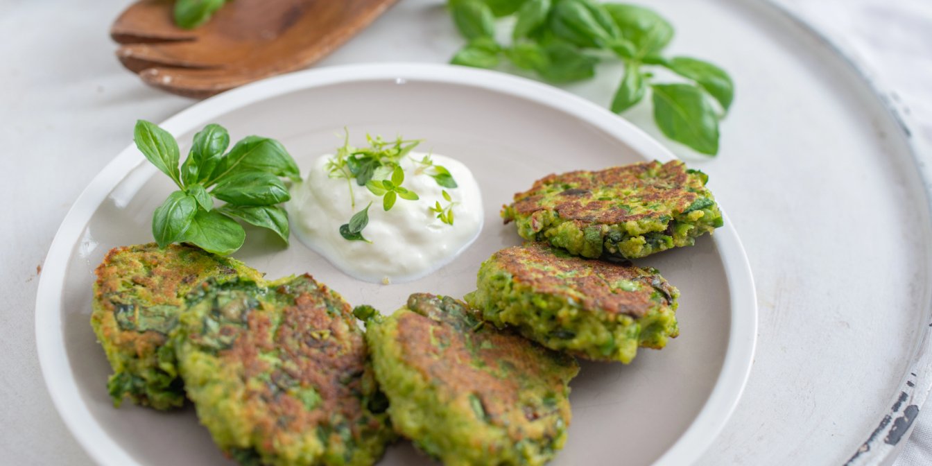 Корисні оладки із зеленого горошку — зелений сніданок із сиром і йогуртовим соусом