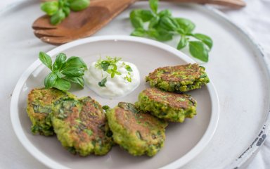 • готові оладки можна подавати з грецьким йогуртом або сметаною. На бажання можна приготувати м’ятний йогуртовий соус або дзадзикі;