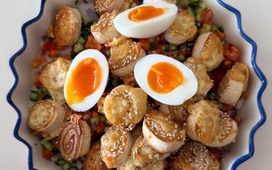 Смачного! Це той варіант, коли простий салат перетворюється на теплу та корисну вечерю або перекус.