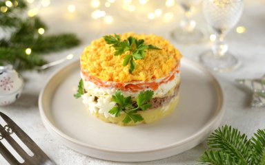 За мотивами новорічного салату готують ефектний вафельний торт «Мімоза», його теж порадимо. Але не можемо не згадати класичний рецепт «Мімози» із сардинами у легшому вигляді. Пропонуємо замість вершкового масла взяти натертий твердий сир.