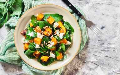 Салат з гарбуза — корисна ідея для вечері, перекусу чи обіду. Ним можна з успіхом пригощати гостей, адже він прикрашає своїм виглядом стіл. У поєднанні зі шпинатом це дуже корисно і смачно!