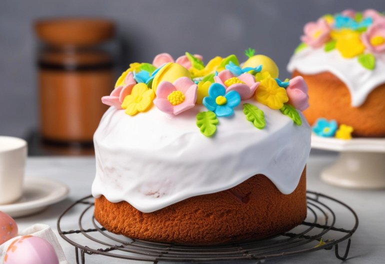 глазур на основі маршмелоу (пластична маса дозволяє робити не тільки кольорову «шапочку» на паску. Із зефіру можна ліпити квіти та інші прикраси, наприклад, вербові гілочки;