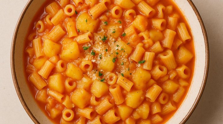 І хоча сама ідея такої страви може здивувати, будьмо відверті — смак подібної комбінації нам чудово знайомий. Хто з нас не памʼятає маминого супу з курочкою, картоплею і макаронами! А вареники з картоплею? Вони дуже схожі на смак. Усе життя ми так чи інак дегустуємо паста-е-патате у різних формах, тож можна сміливо стверджувати, що це страва з українською душею.