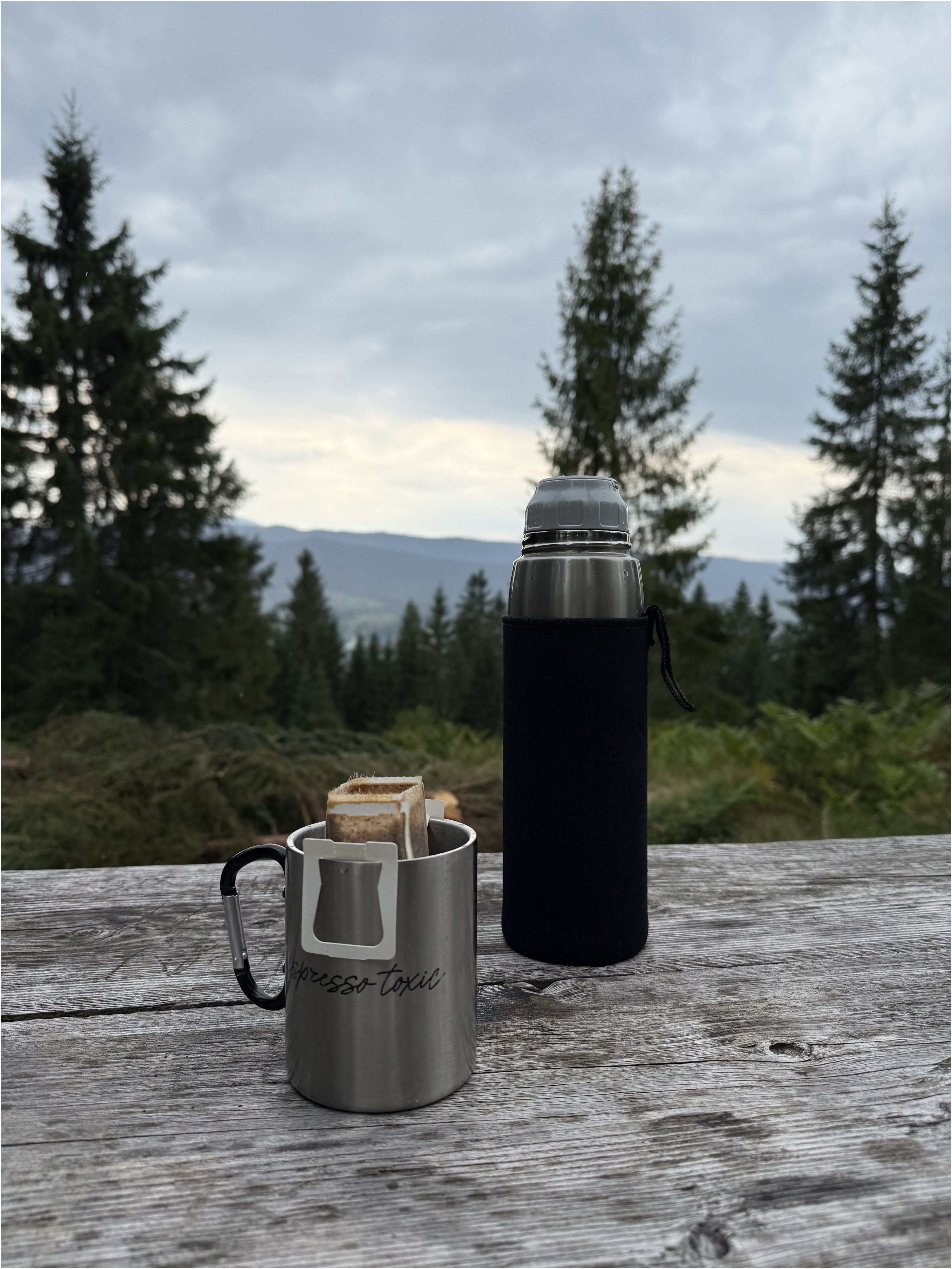 У мене є певні традиції, пов’язані з їжею в горах. Я завжди беру кабаноси до веганських сублімованих страв — чомусь дуже подобається це поєднання. Також маю воронку, через яку заварюю каву.