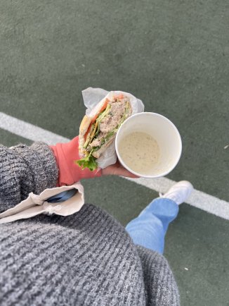 На обід я зазвичай брала жирненький сирний суп і бутерброд або лаваш.
