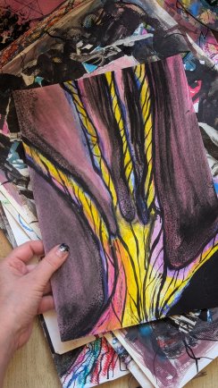 Я художниця. Хаотичне малювання, абстракція допомагає моїм емоціям вийти назовні. Іноді я не знаю, що в мене вийде на папері. Коли бачу малюнок, то розумію, про що він. Тобто в дечому моя творчість — це і щоденник емоцій теж.