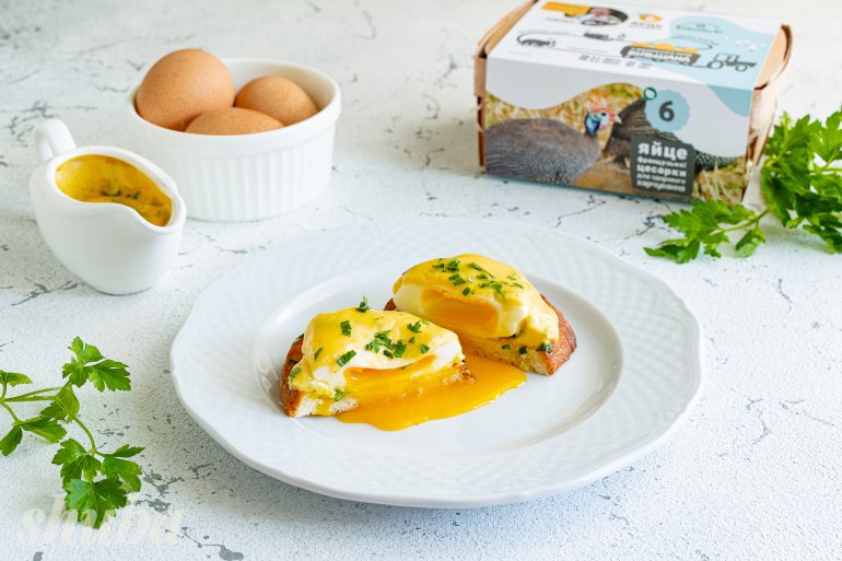 Пашот із яєць цесарки виходить більш насиченим, ніж з курячих яєць: жовток кремовіший, а соус з естрагоном підсвічує цей смак, не перебиваючи його. Такий сніданок або бранч особливо зайде тим, хто цінує гастрономічні враження без зайвої складності та хоче спробувати щось із французької традиції у себе вдома.
