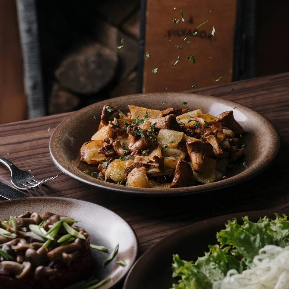 До кров’янки можеш замовити картоплю з лисичками. Запашні лісові гриби в поєднанні з хрусткою картоплею — це і чудовий гарнір, і ситна повноцінна страва.
