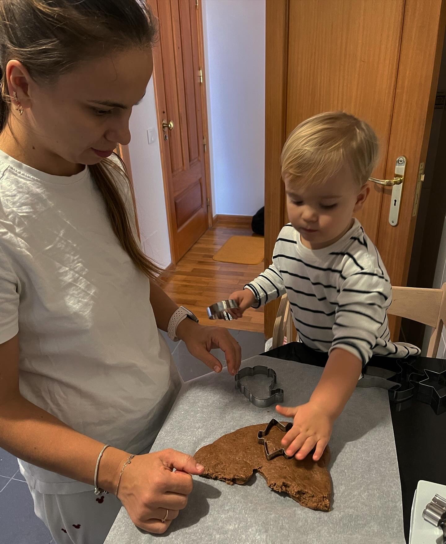 Валя з сином разом готують їсти