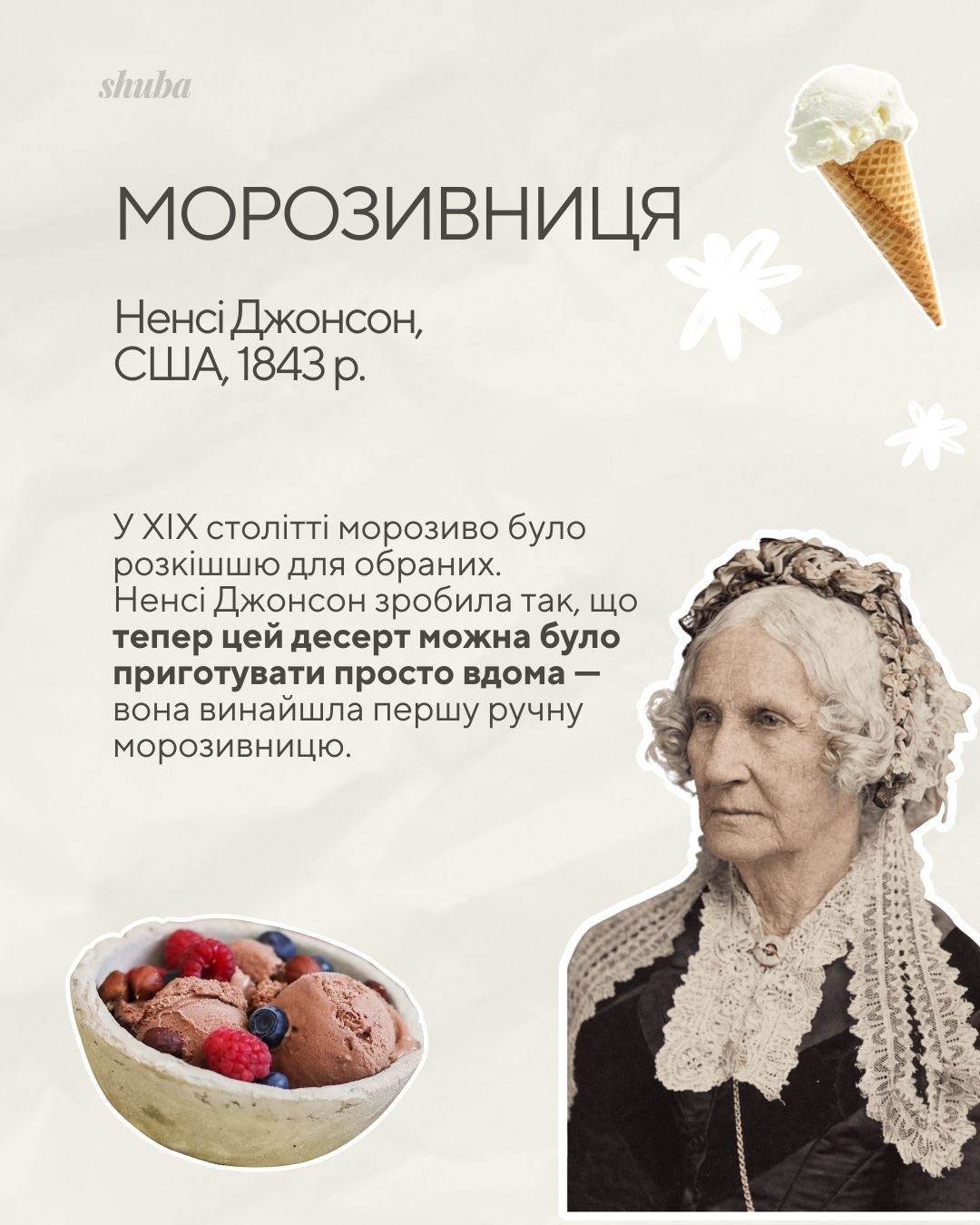 Ще у 19 столітті звичайне морозиво було розкішшю, доступною тільки тим, хто міг найняти особистого кухаря або мав льодовні. Ненсі Джонсон змінила це, винайшовши першу у світі морозильну камеру для морозива.