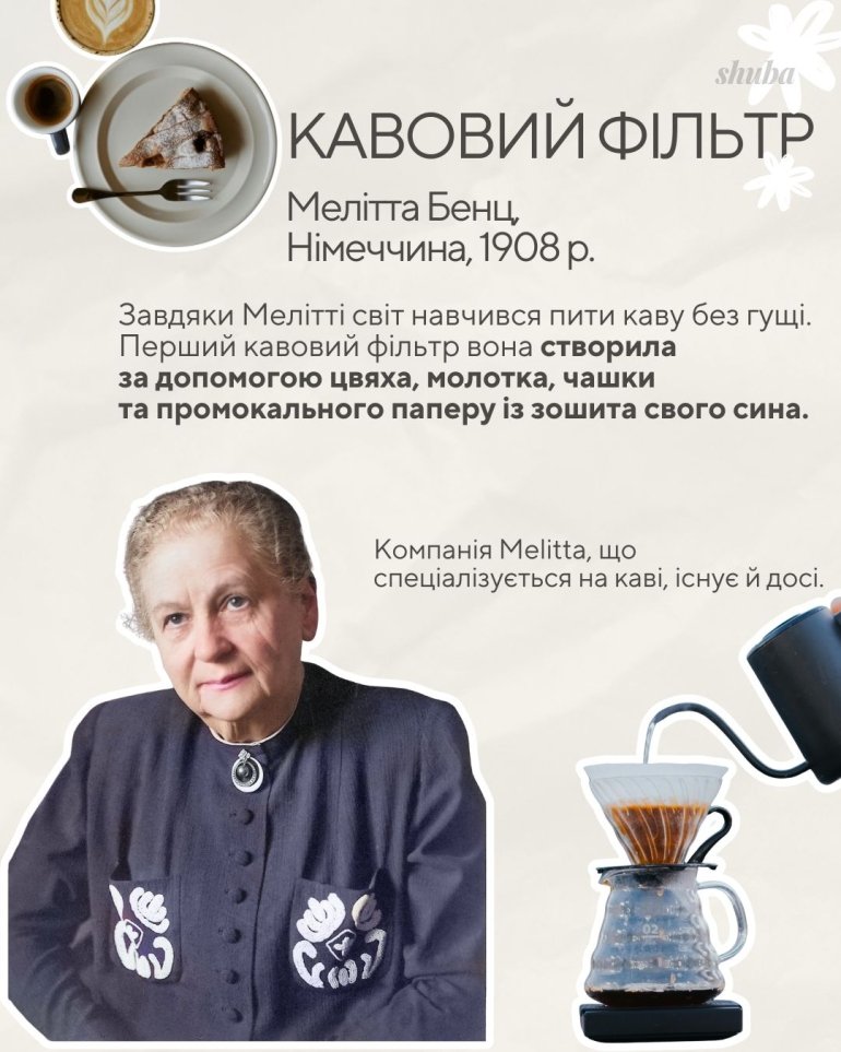 Коли ти п’єш фільтр-каву в кавʼярні, то скоріш за все користуєшся винаходом Мелітти Бенц.
