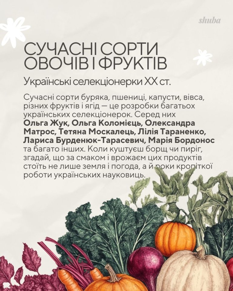Тож коли куштуєш борщ чи пиріг, згадай, що за смаком і врожаєм цих продуктів стоїть не лише земля і погода, а й роки кропіткої роботи українських науковиць.