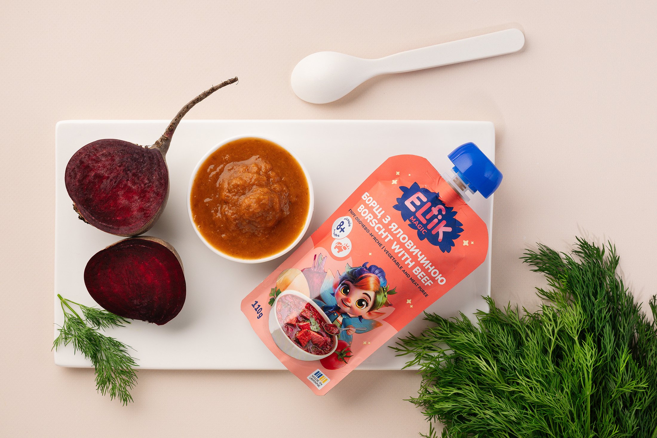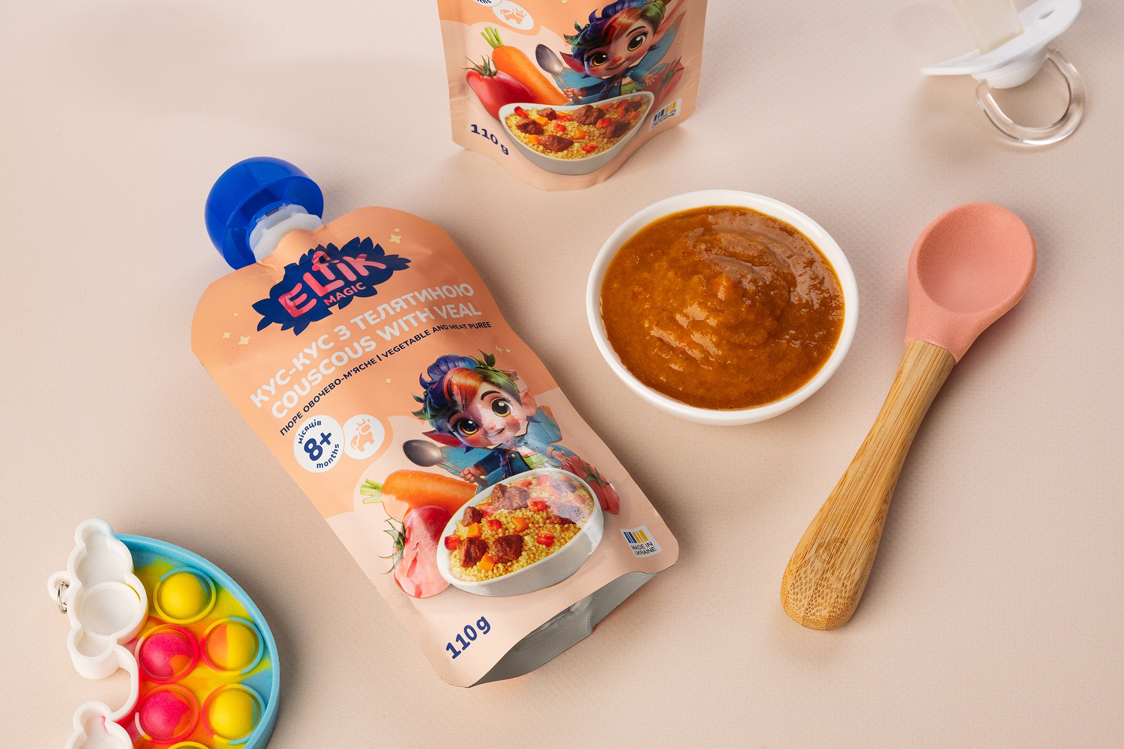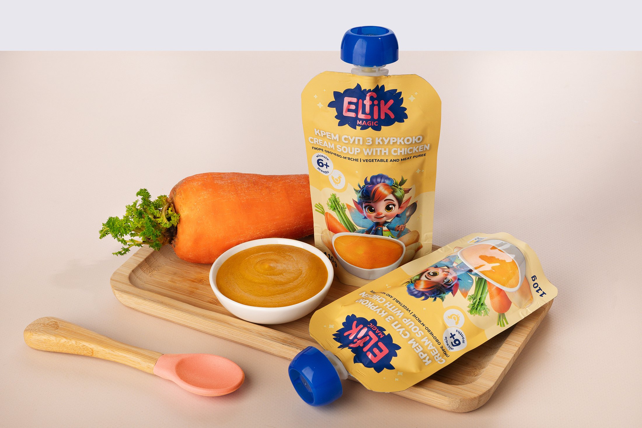 Наприклад, український бренд ELFIK MAGIC створив нову лінійку мʼясо-овочевих пюре: крем-суп з куркою, борщ з яловичиною та кускус з телятиною. Ці продукти не містять доданої солі, консервантів, барвників, загущувачів і ГМО.