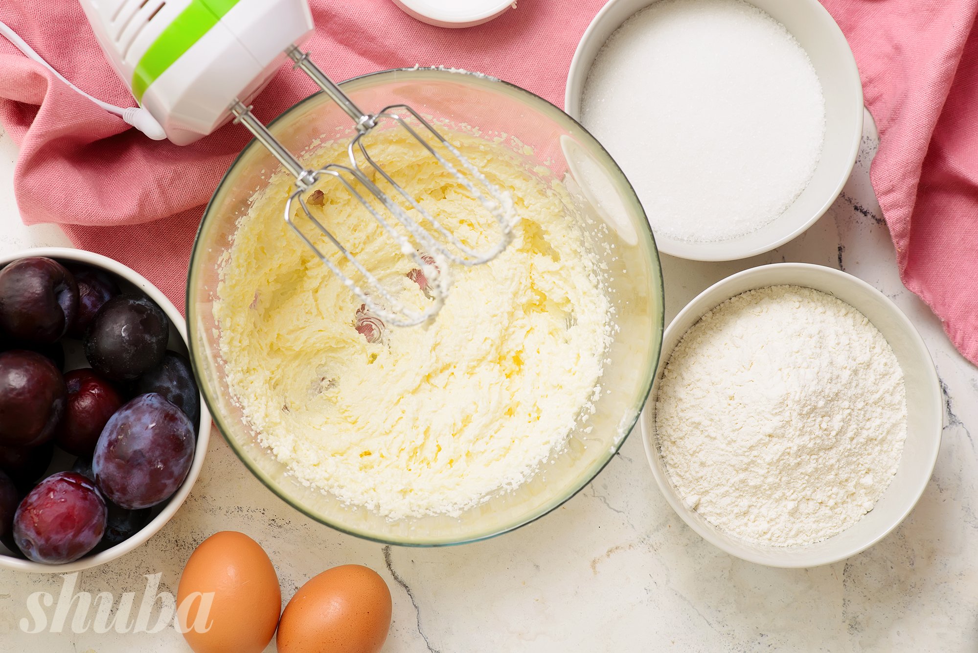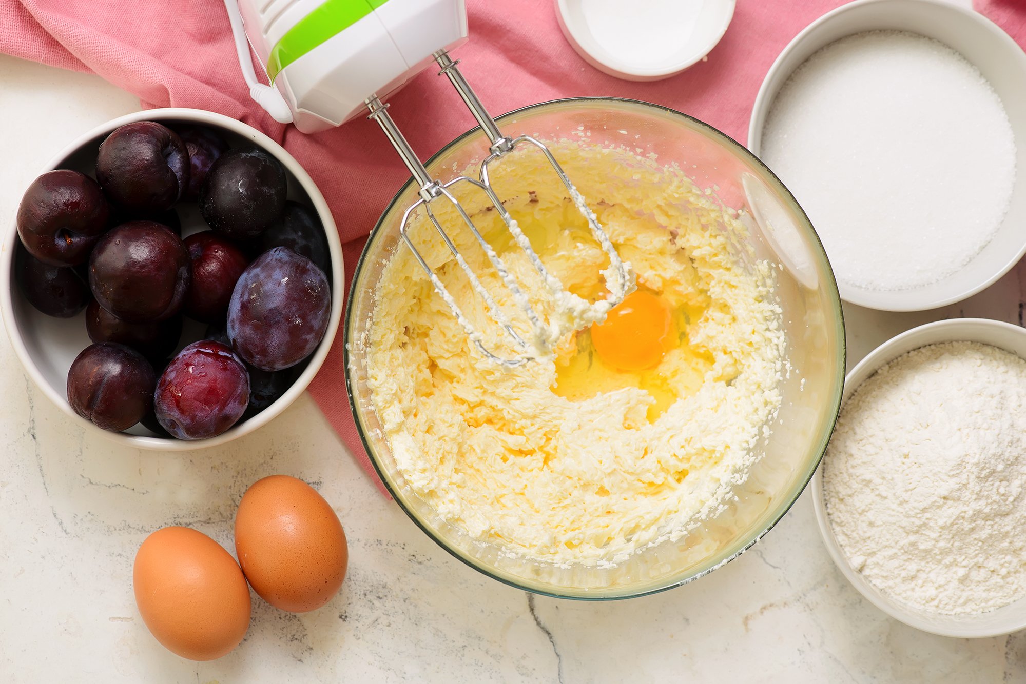 Додаємо в тісто білий, а в начинку — коричневий цукор. Якщо ти не любиш солодке, кількість цукру в тісті можна зменшити до 90 г, а сливи побризкати лимонним соком.