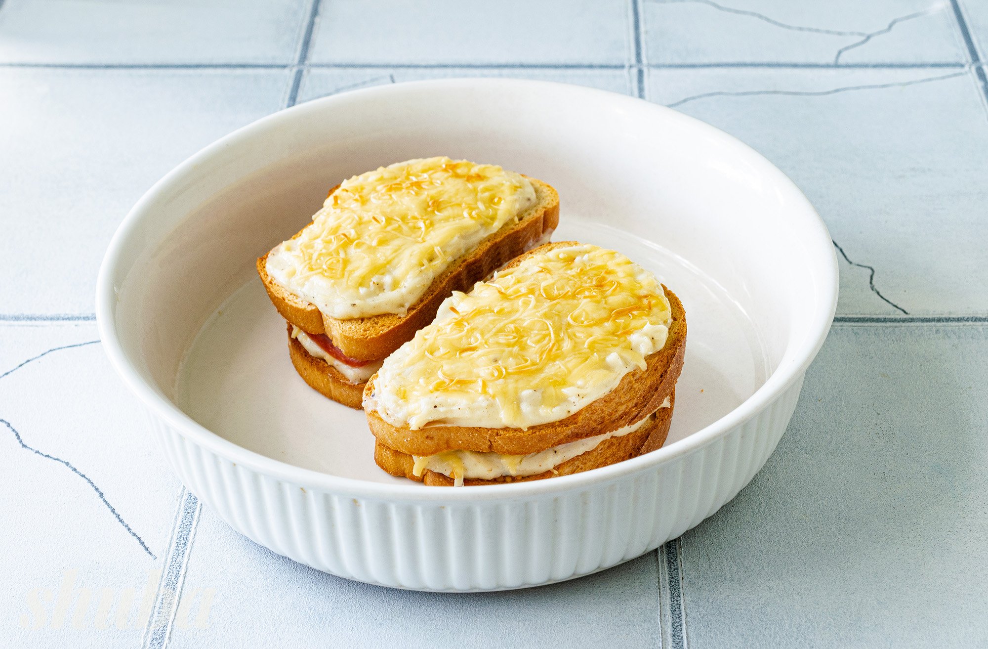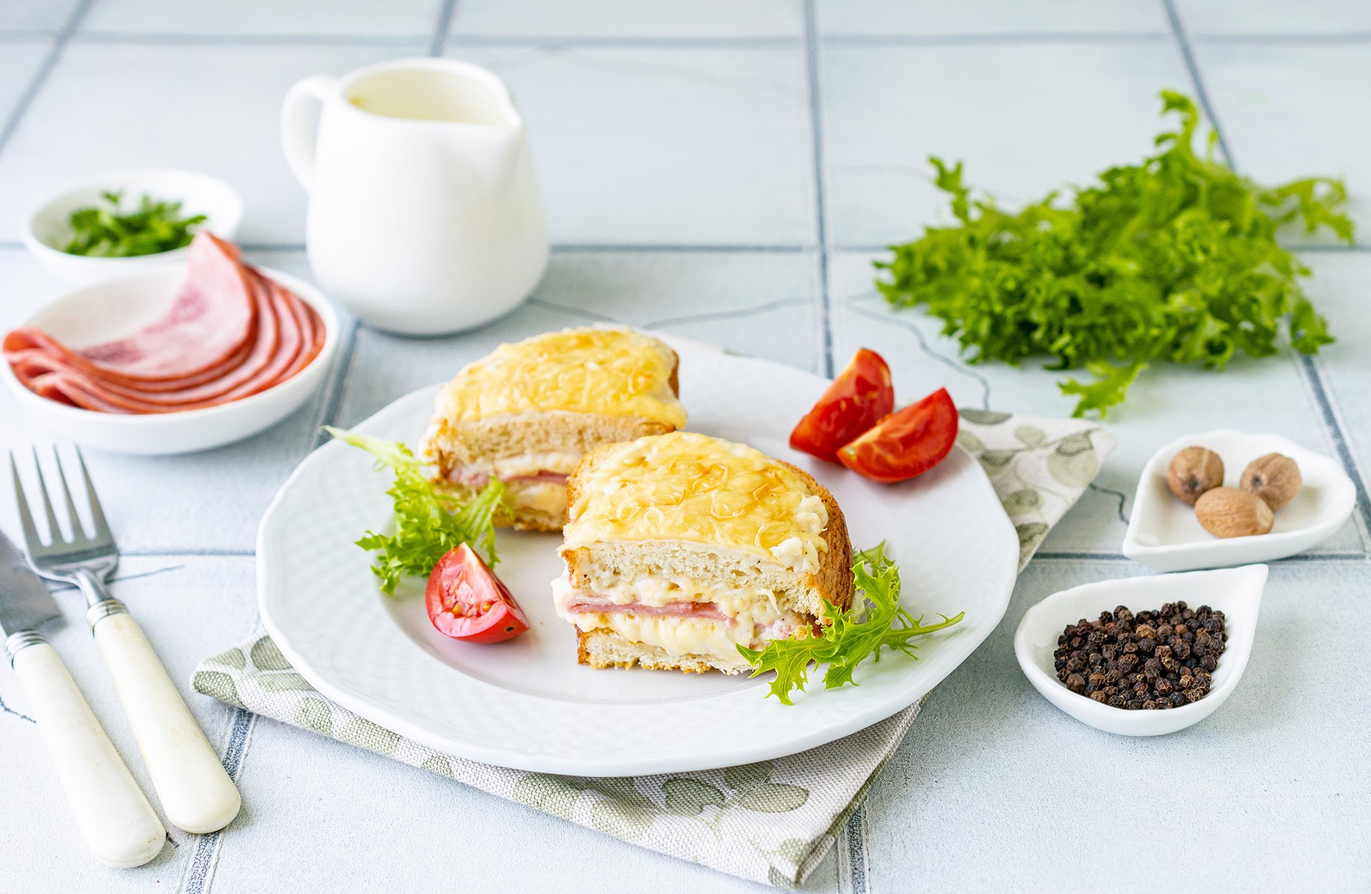 Легендарний французький бутерброд із шинкою та сиром під соусом бешамель, який запікається до золотистої скоринки. Приготуй його вдома й потіш себе класикою паризьких бістро.