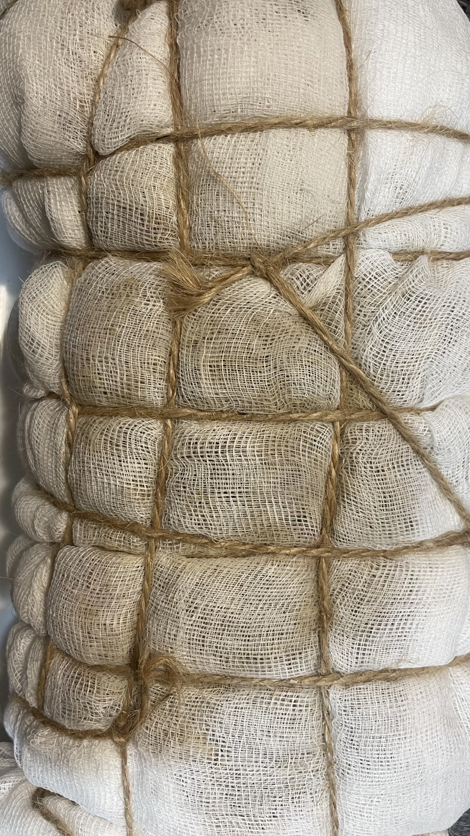 Куштувати свинину можна буде трохи більше, ніж за місяць. Підготуй марлю та міцно мотузку. Свинячий биток потрібно добре загорнути.