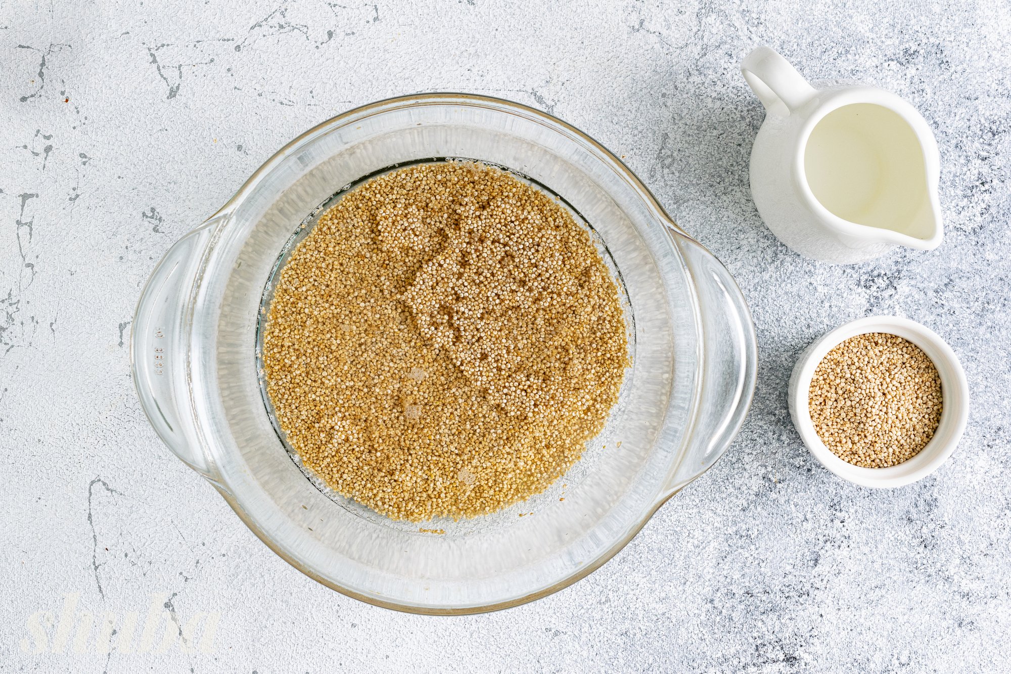 Використовуючи дрібне сито, ретельно промий кіноа під проточною водою. Переклади крупу в каструлю, залий гарячою водою у співвідношенні 1:2.