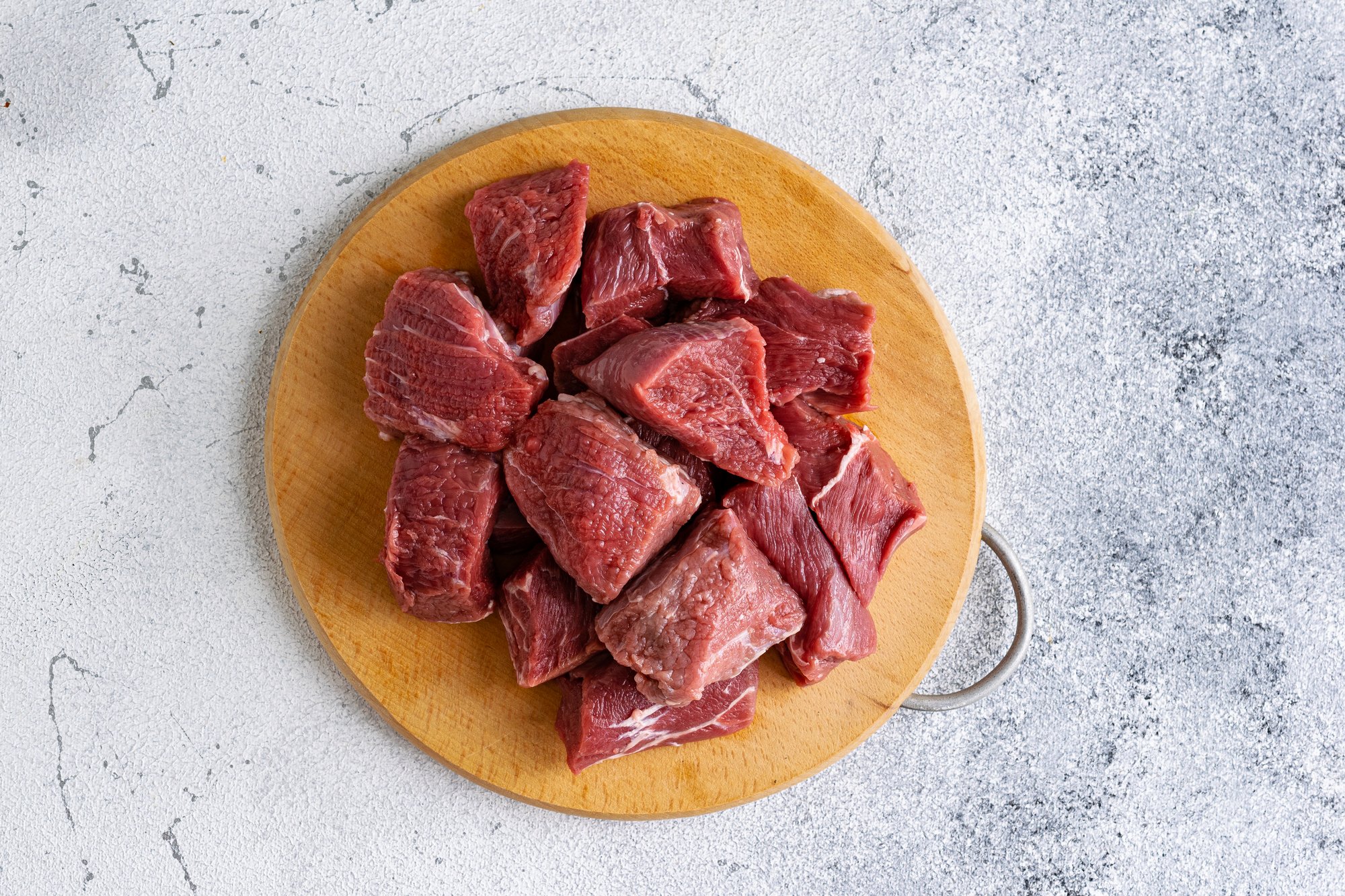 Яловичину помий, обсуши від зайвої вологи паперовими серветками. Зачисти м’ясо від жиру та плівочок, наріж крупними шматочками.