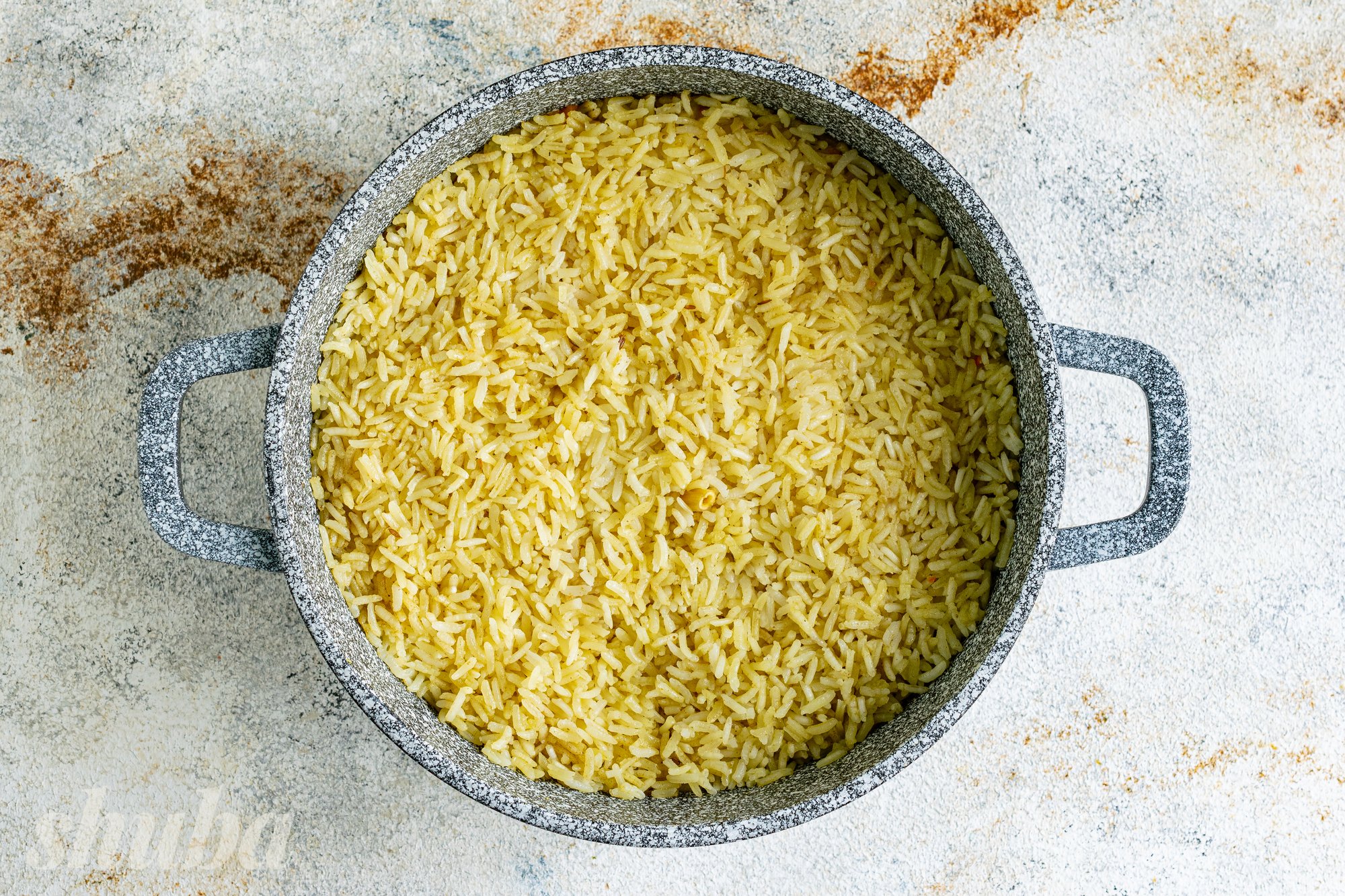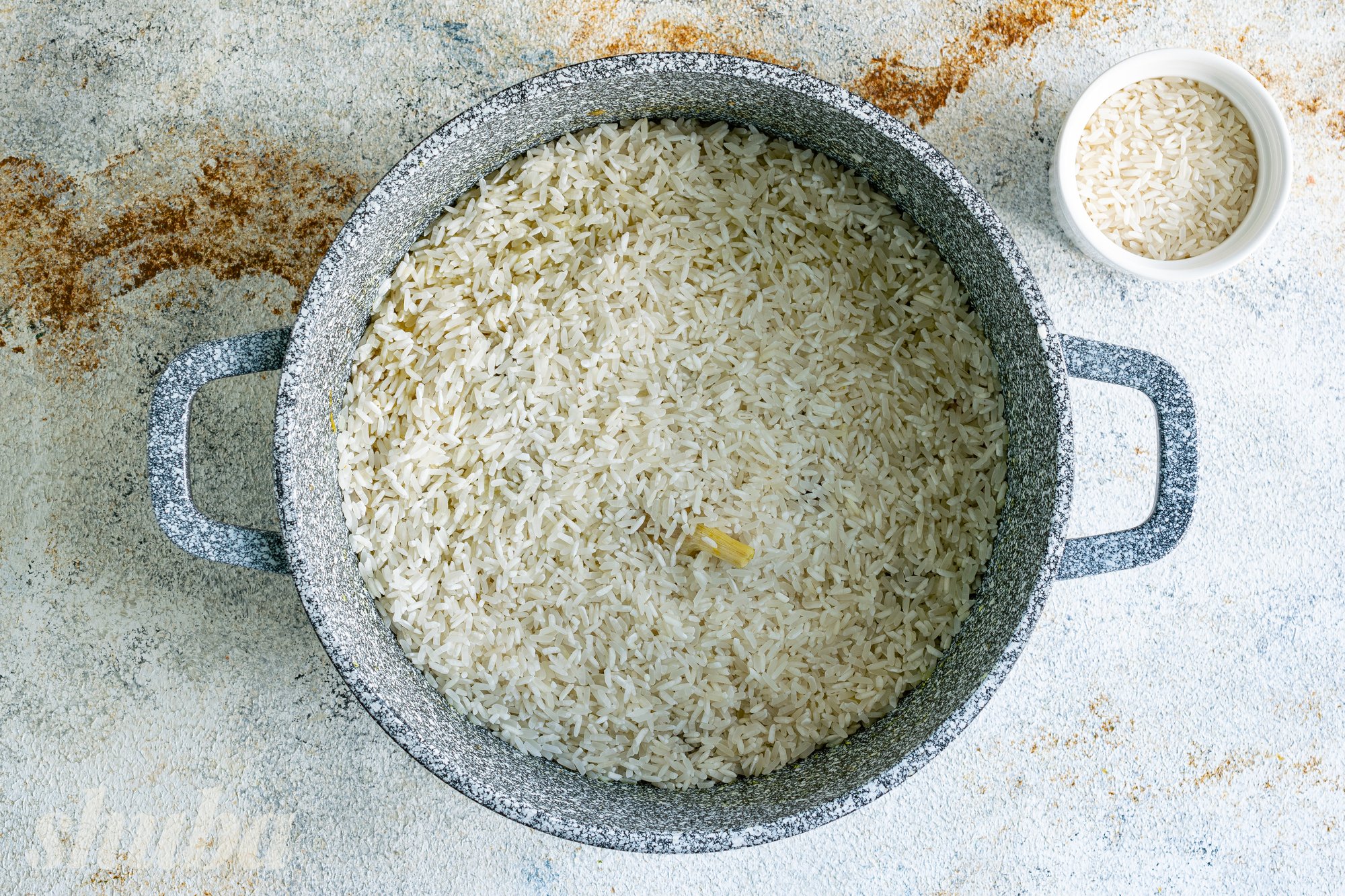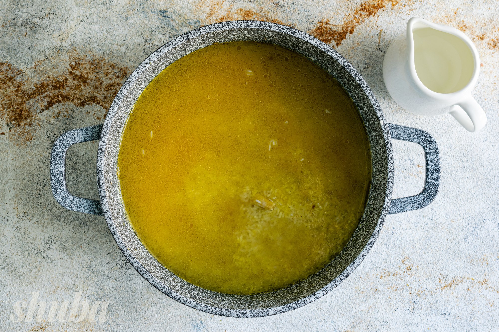 Залий інгредієнти гарячою водою так, щоб рис був покритий рідиною на 1 см.