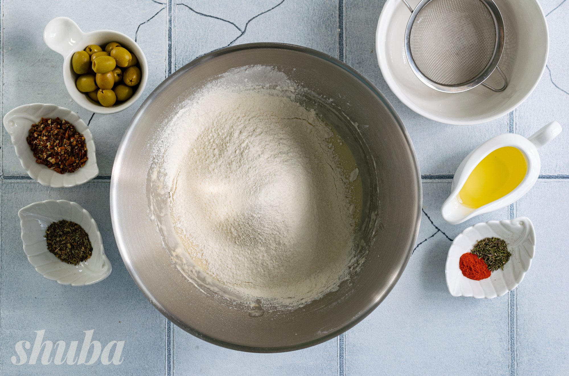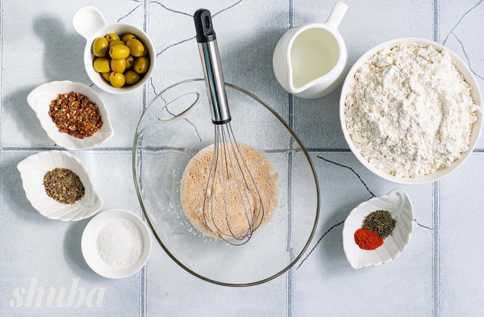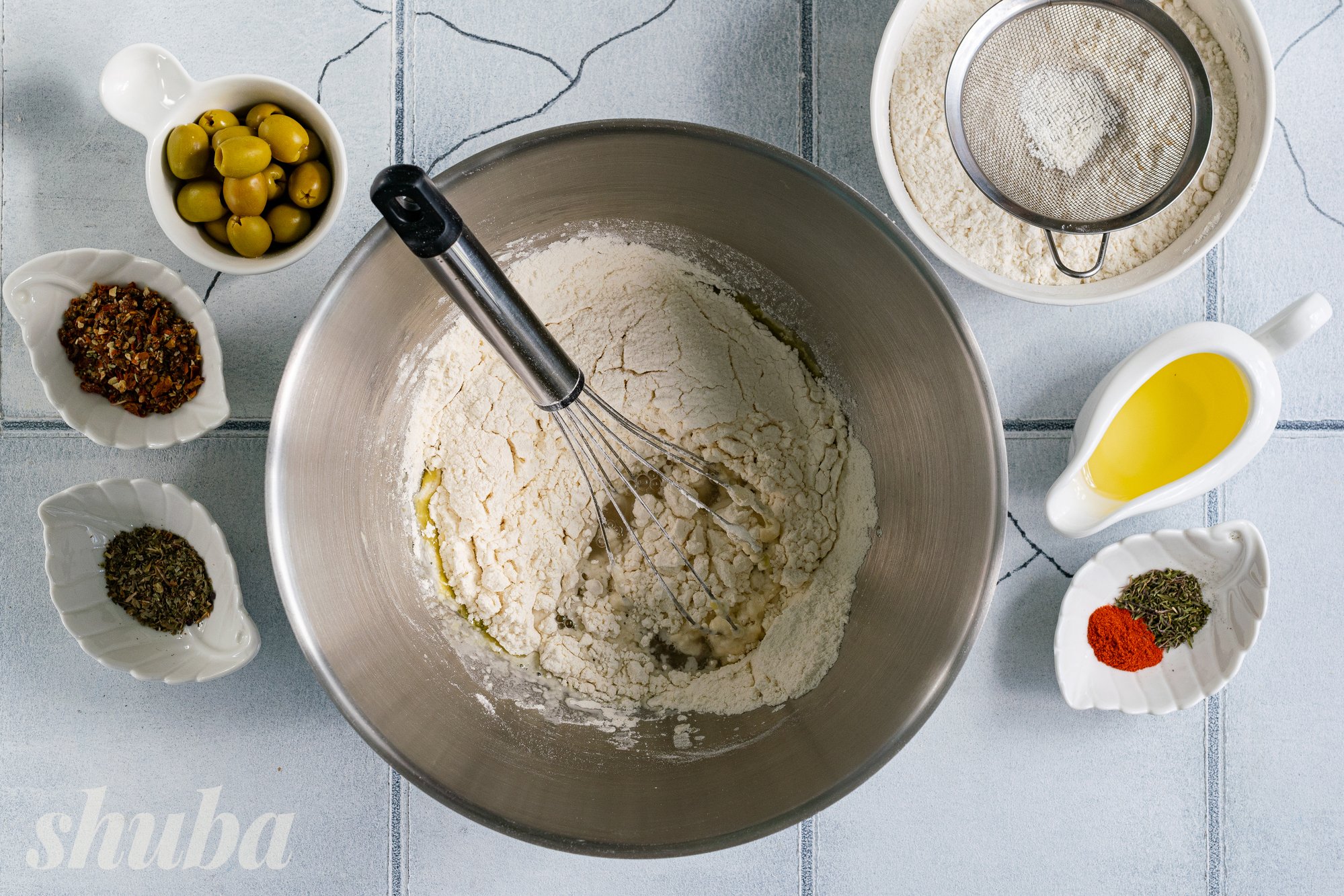 У нашому рецепті фокача набуває середземноморських ноток завдяки оливкам, солодкуватим сушеним томатам, свіжому базиліку та пряному чебрецю. Ці інгредієнти не лише надають хлібу насичений смак, а й наповнюють його ароматами сонячного півдня. Уявіть: щойно випечений коржик, оливкова олія ще злегка переливається на золотистій скоринці, а з духовки доноситься суміш трав’яних і томатних акцентів — утриматися неможливо!