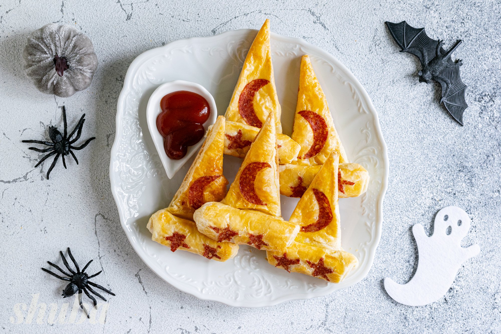 Ця оригінальна закуска «Капелюх відьми» створена спеціально до Гелловіну — свята, коли їжа стає частиною декорацій. Золотисті, ароматні «капелюхи відьми» виглядають настільки ефектно, що прикрасять будь-який святковий стіл. Зовні це хрустке, повітряне листково-дріжджове тісто, сформоване у конус. За формою воно нагадує класичний відьомський капелюх. Верх прикрашений шматочками ковбаси, а всередині ховається тягуча моцарелла, яка при надкушуванні ніжно розтікається.