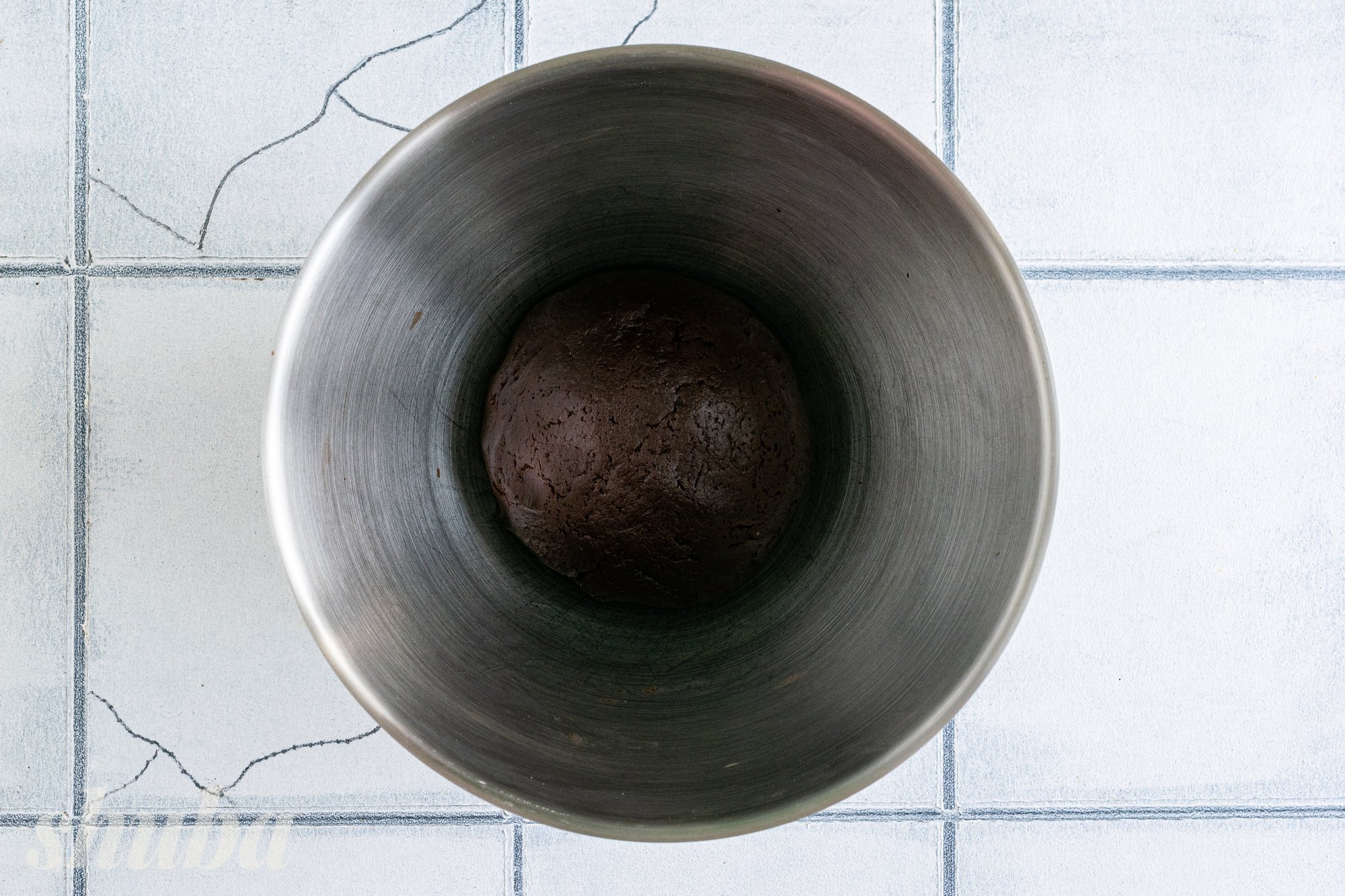 Спочатку перемішай інгредієнти силіконовою лопаткою, потім заміси м’яке та еластичне тісто. Загорни його в харчову плівку і відправ у холодильник на 30 хвилин.