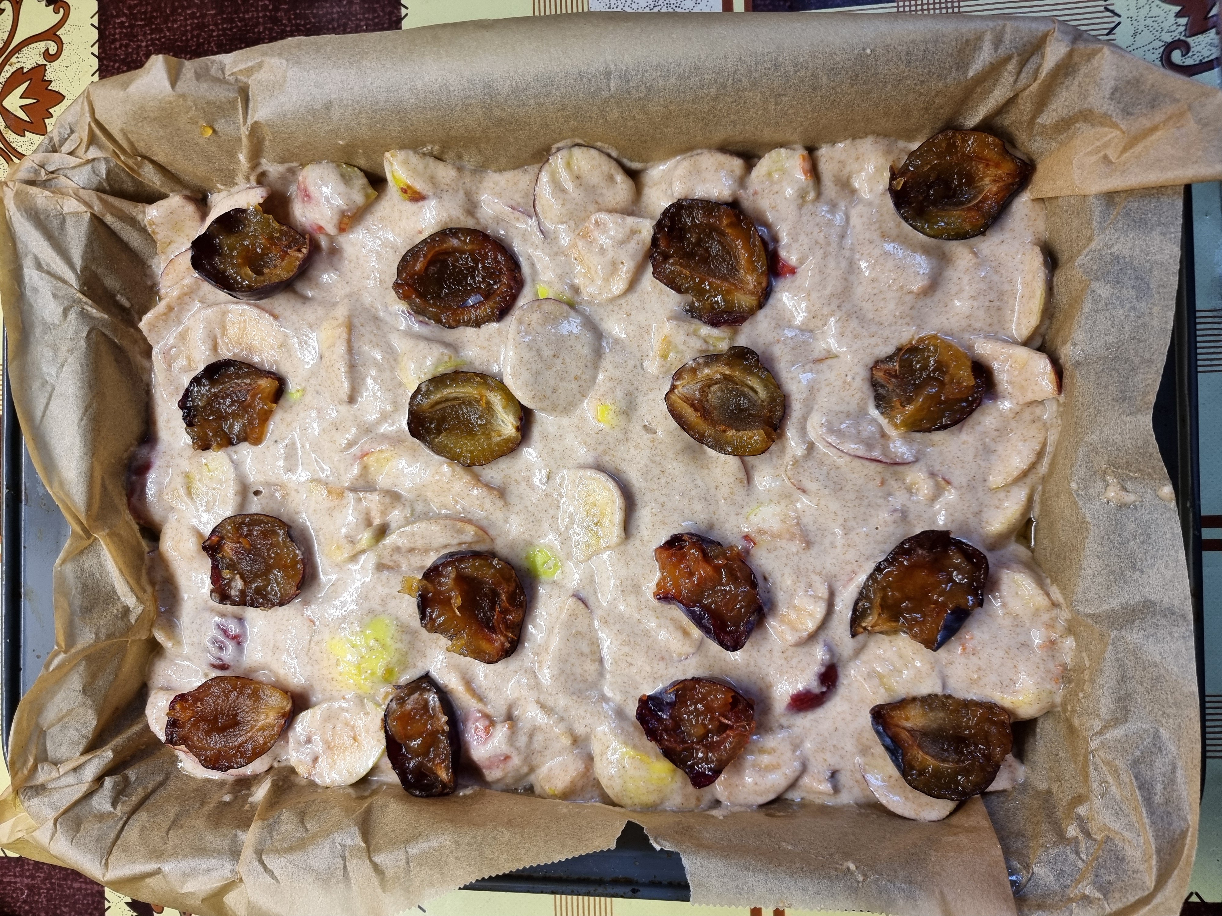 Пиріг фруктовий з цільнозернового борошна — корисний десерт із яблуками та сливами