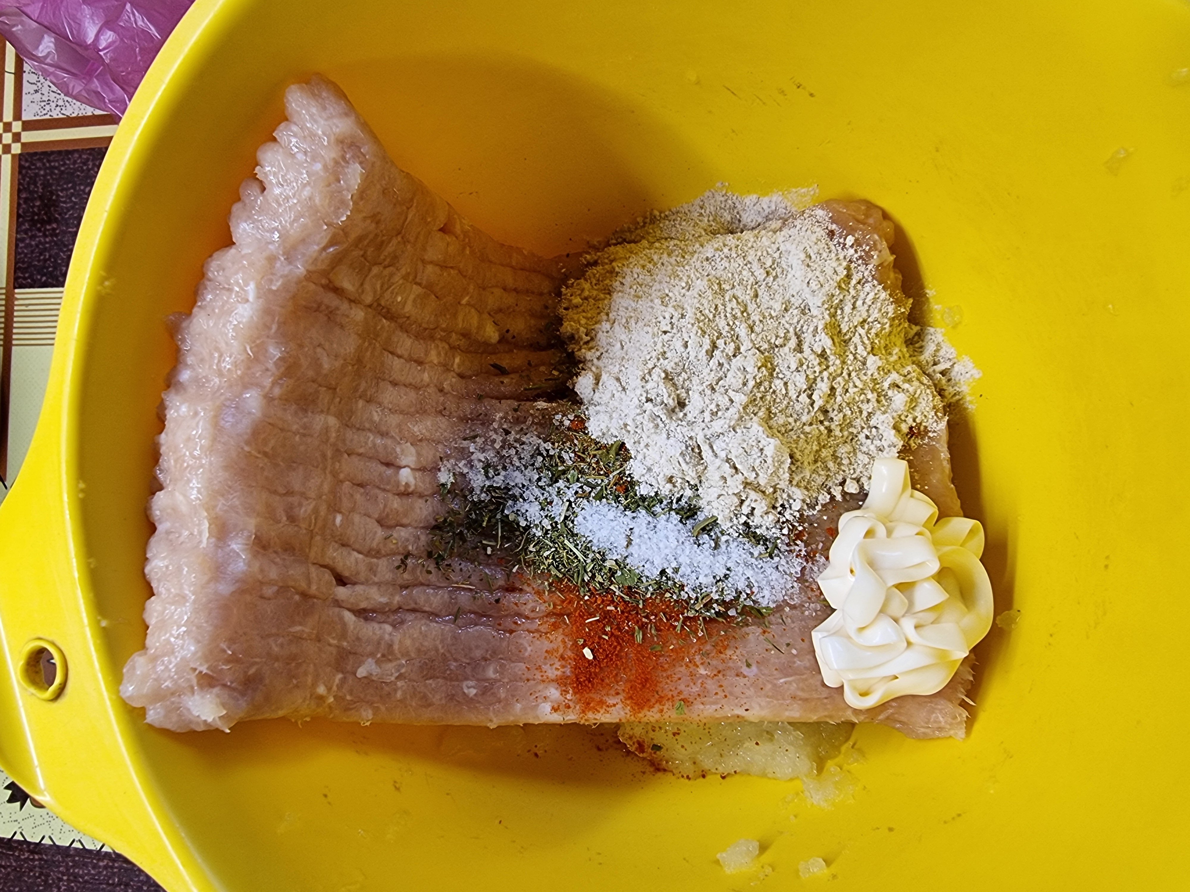 До фаршу, крім майонезу та гірчиці, можна додати спеції для шашлику, сушені трави (кріп, петрушку). Подавати радять з відвареною картоплею і маринованою цибулею.