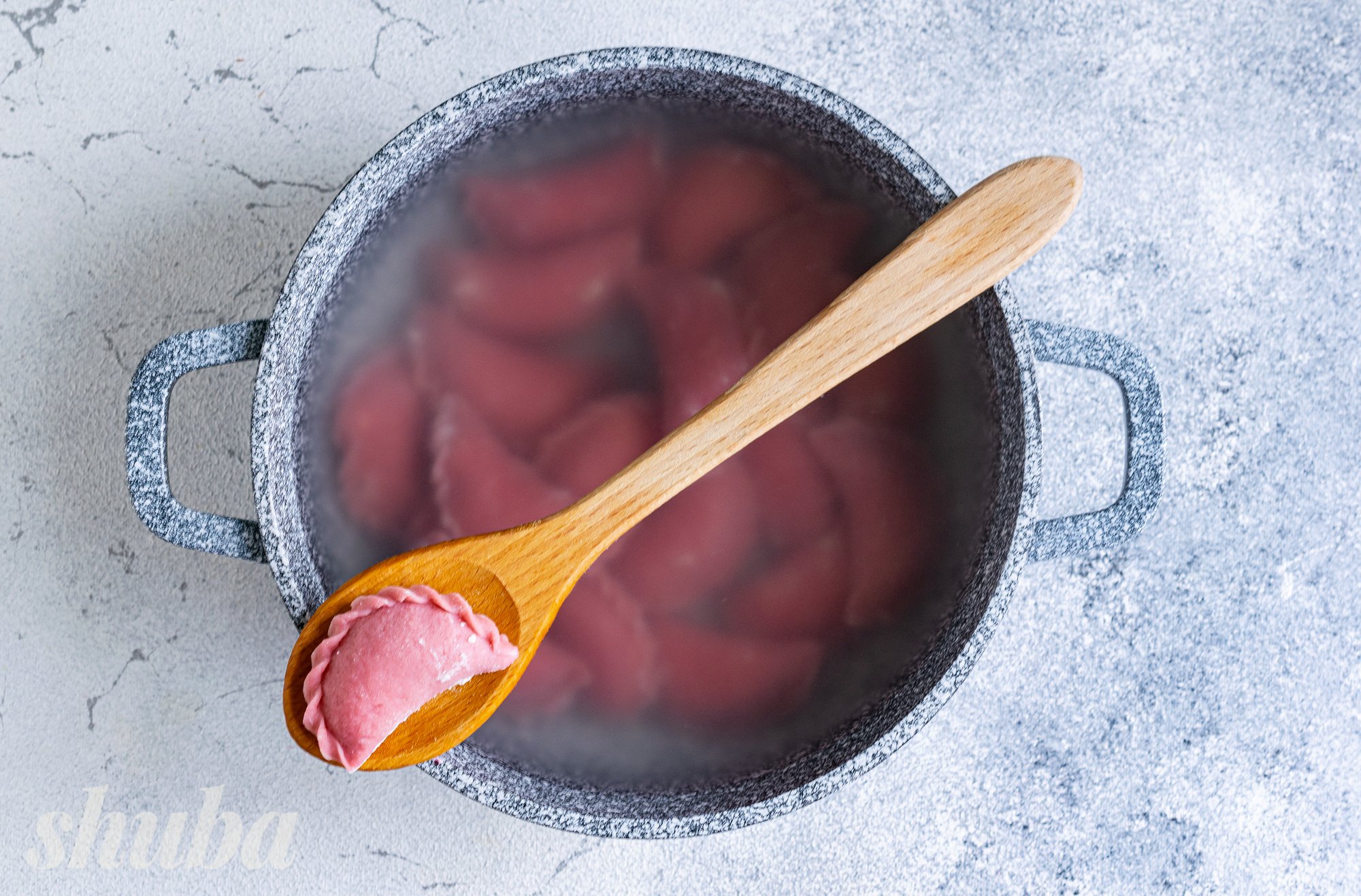 Після того, як вареники спливуть на поверхню, провари їх протягом 3-4 хвилин. Дістань готові вареники з каструлі за допомогою шумівки.