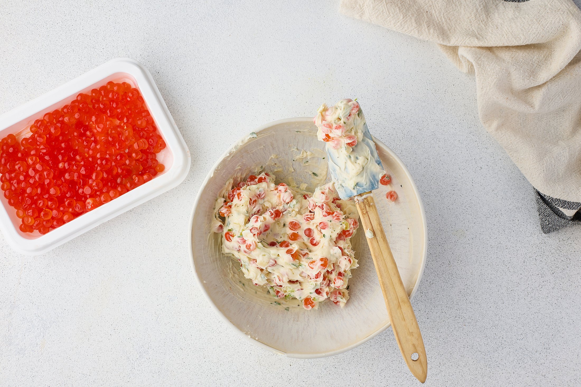 У цьому рецепті ми використовуємо ікру кичужа (лосося срібного), якого виловлюють на Алясці. Так само можна використовувати ікру горбуші, кети, чавичі або нерки. Ікра лосося дикого вилову з Аляски має виразний смак і гарну, пружну зернинку.