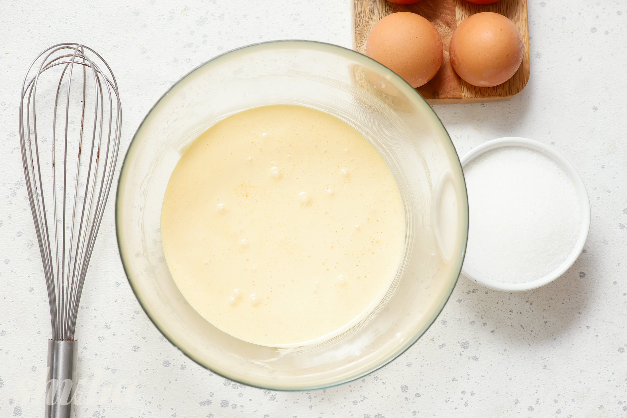 Відокрем жовтки від білків. Жовтки збий із 150 г цукру до світлої, густої маси, поки кристали цукру майже повністю не розчиняться.