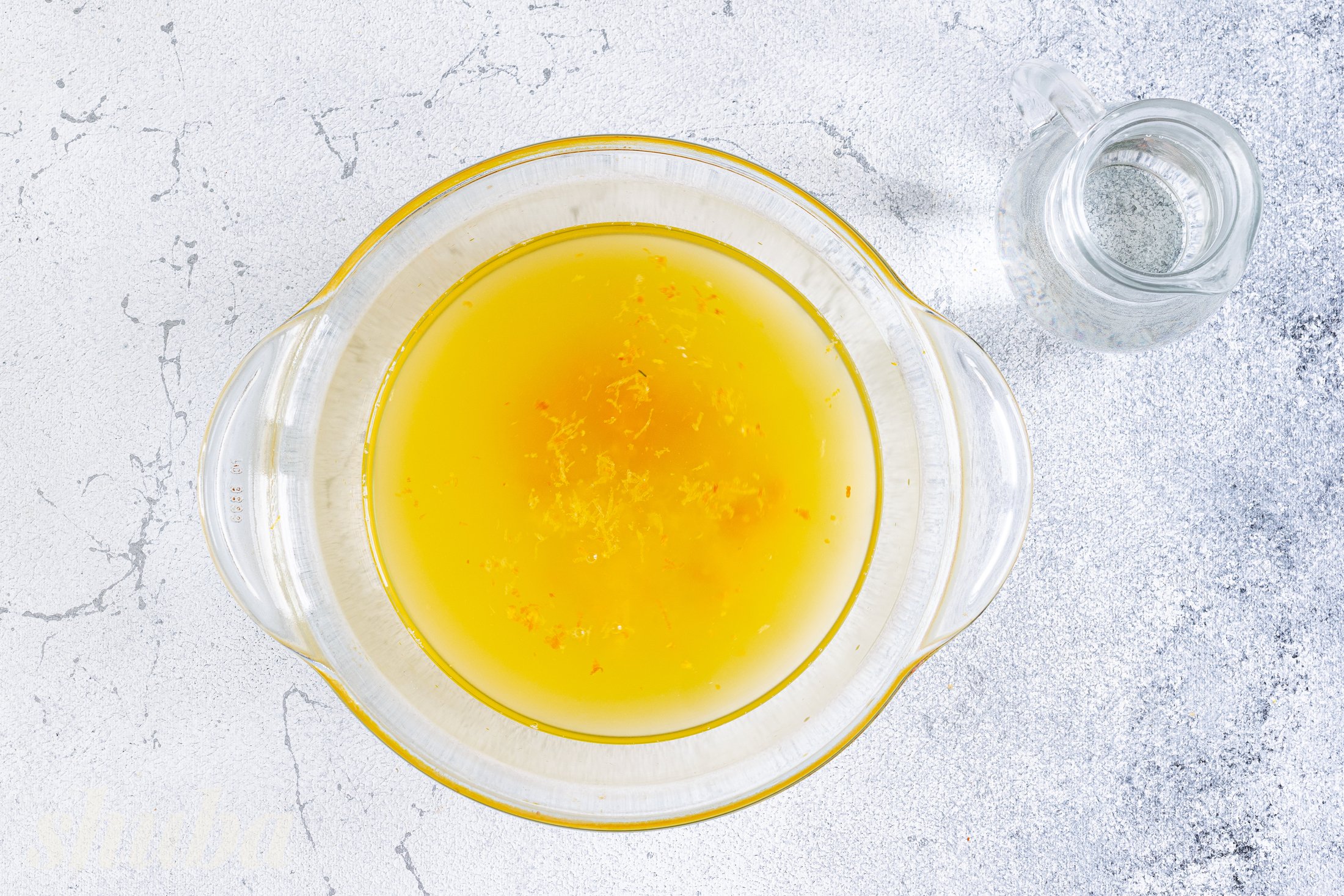 Влий воду так, щоб загальний об’єм рідини становив приблизно 500 мл. Додай цедру апельсина, лимона та мандаринів.