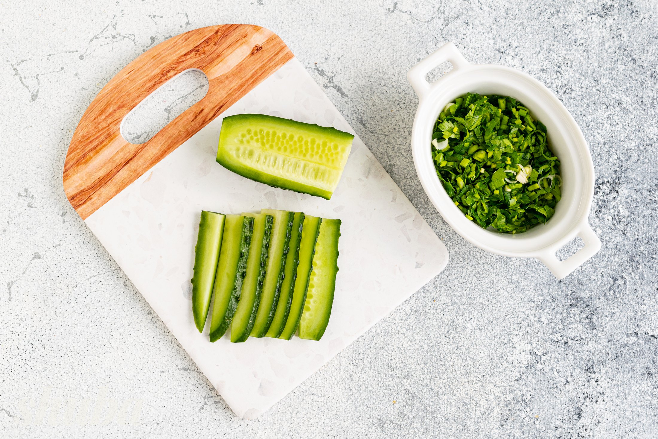 5/6. Додай печінку тріски та огірок