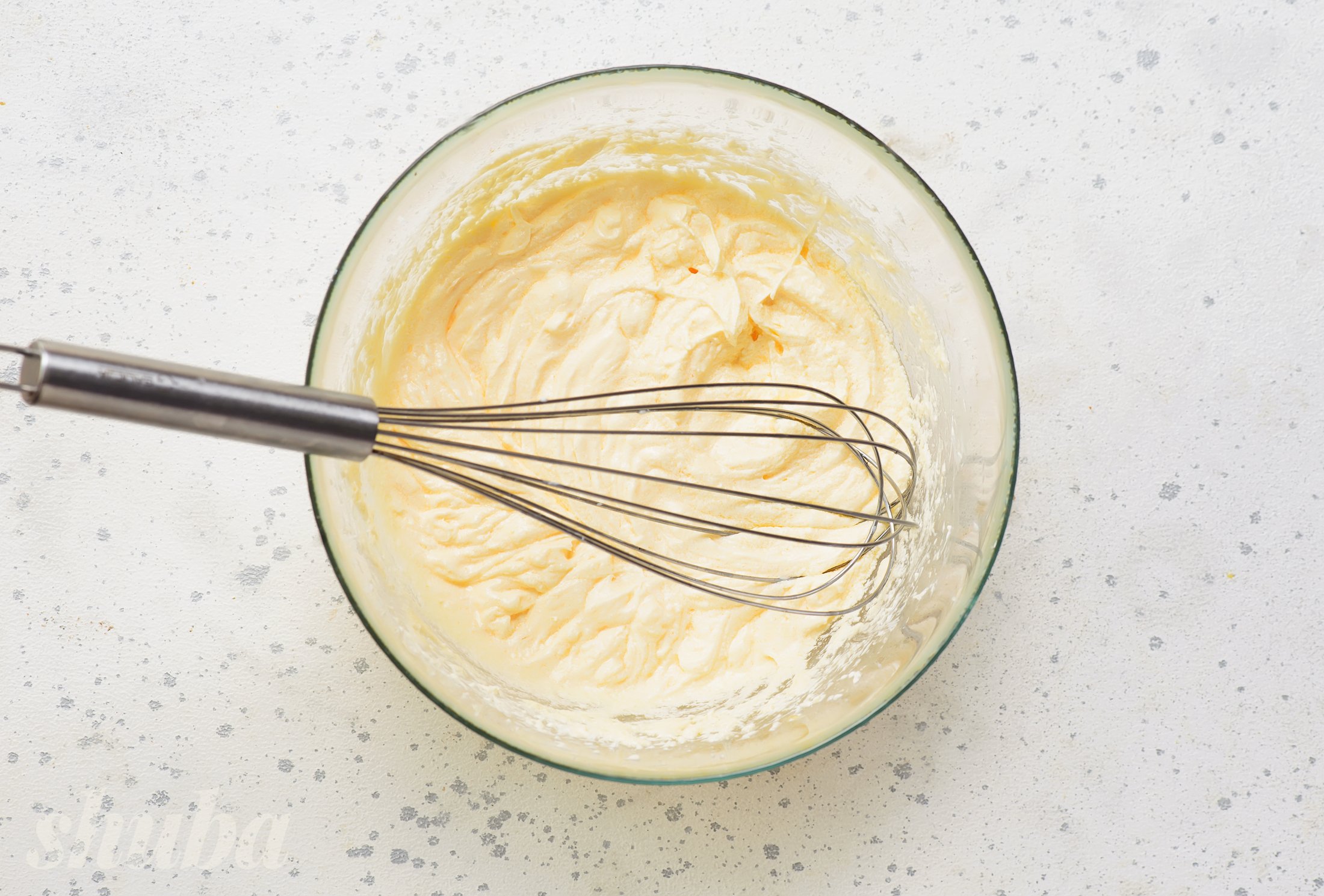 Вершкове масло дістань заздалегідь, щоб воно стало кімнатної температури. Збий його з цукром до світлого, пишного крему. Вводь яйця по одному та кожного разу збивай масу до однорідності.