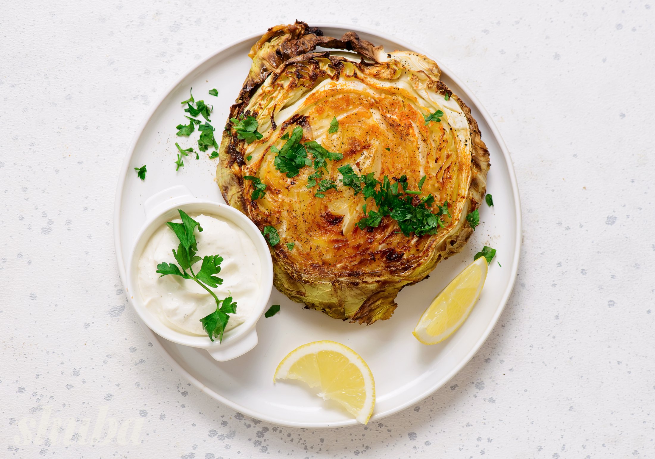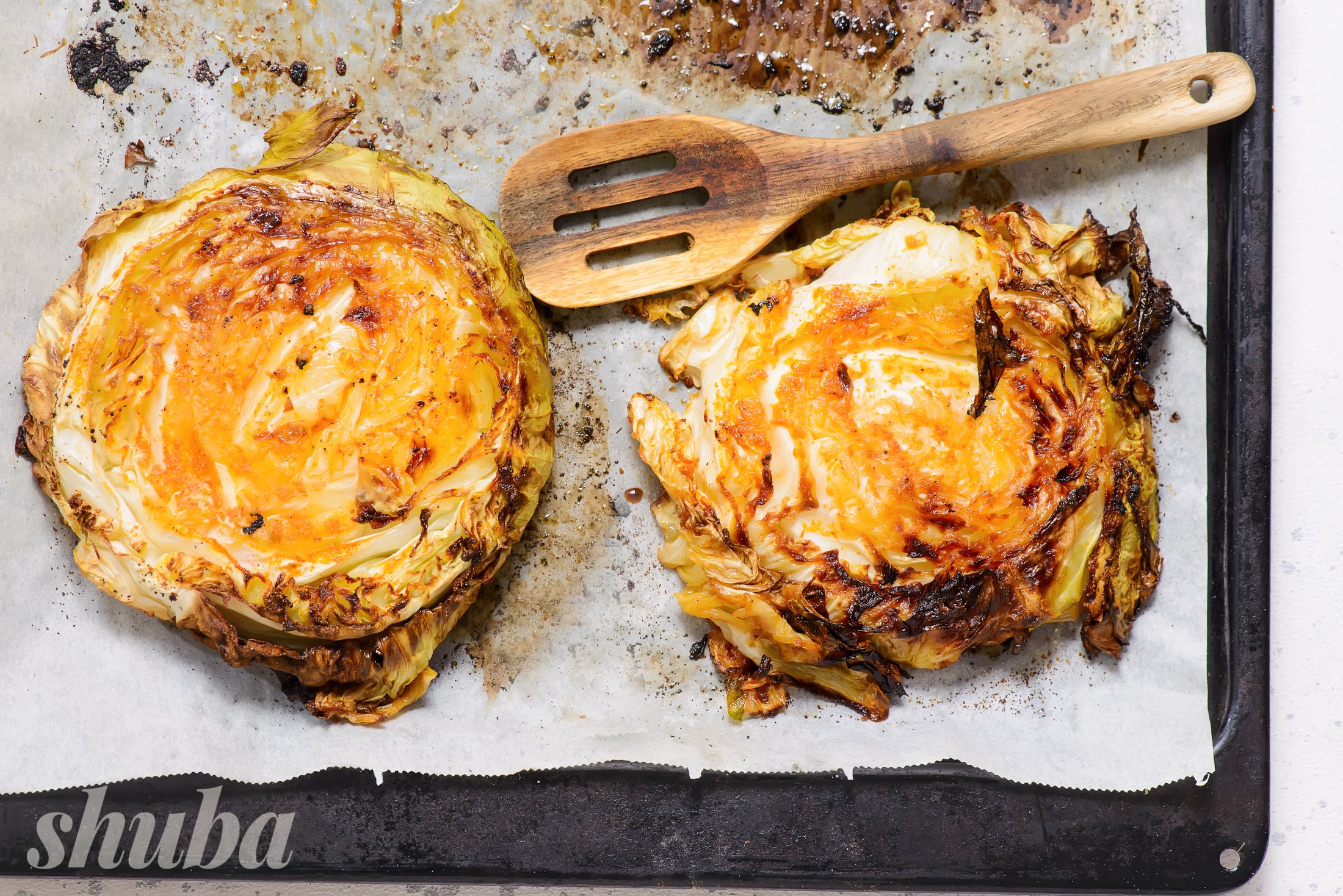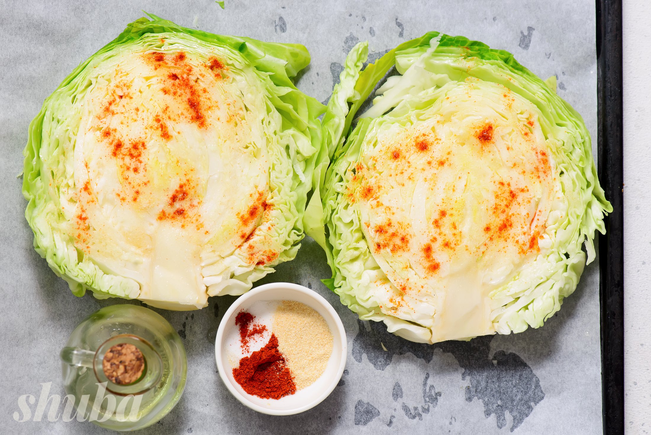 Стейки з капусти — це доволі універсальна страва, можна додавати улюблені спеції, легкі соуси на основі йогурту чи зелень. Але сама лише капуста також може бути повноцінним основним інгредієнтом. Спеції тут базові й зрозумілі: паприка та сушений часник додають солодкості, а оливкова олія допомагає рівномірно запектись.