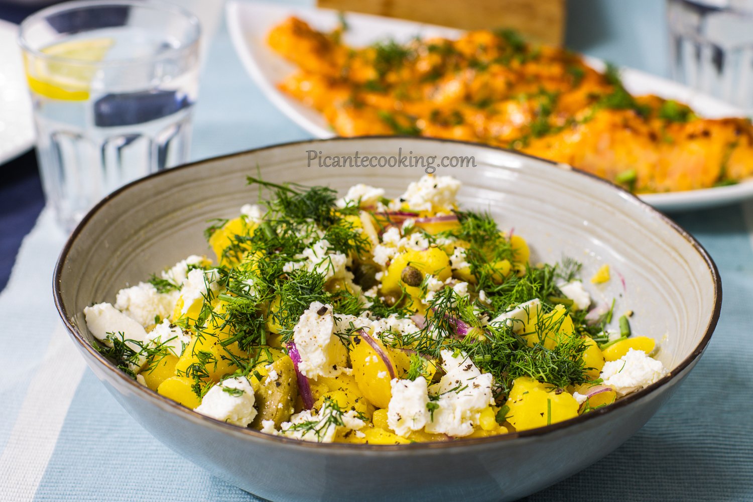 Як і німецький картопляний салат, грецький ідеальний до м’яса, курки та риби. Нам потрібно зварити 800 грамів картоплі та поєднати з маринованою цибулею і зеленими оливками. Наприкінці прикрашаємо фетою.
