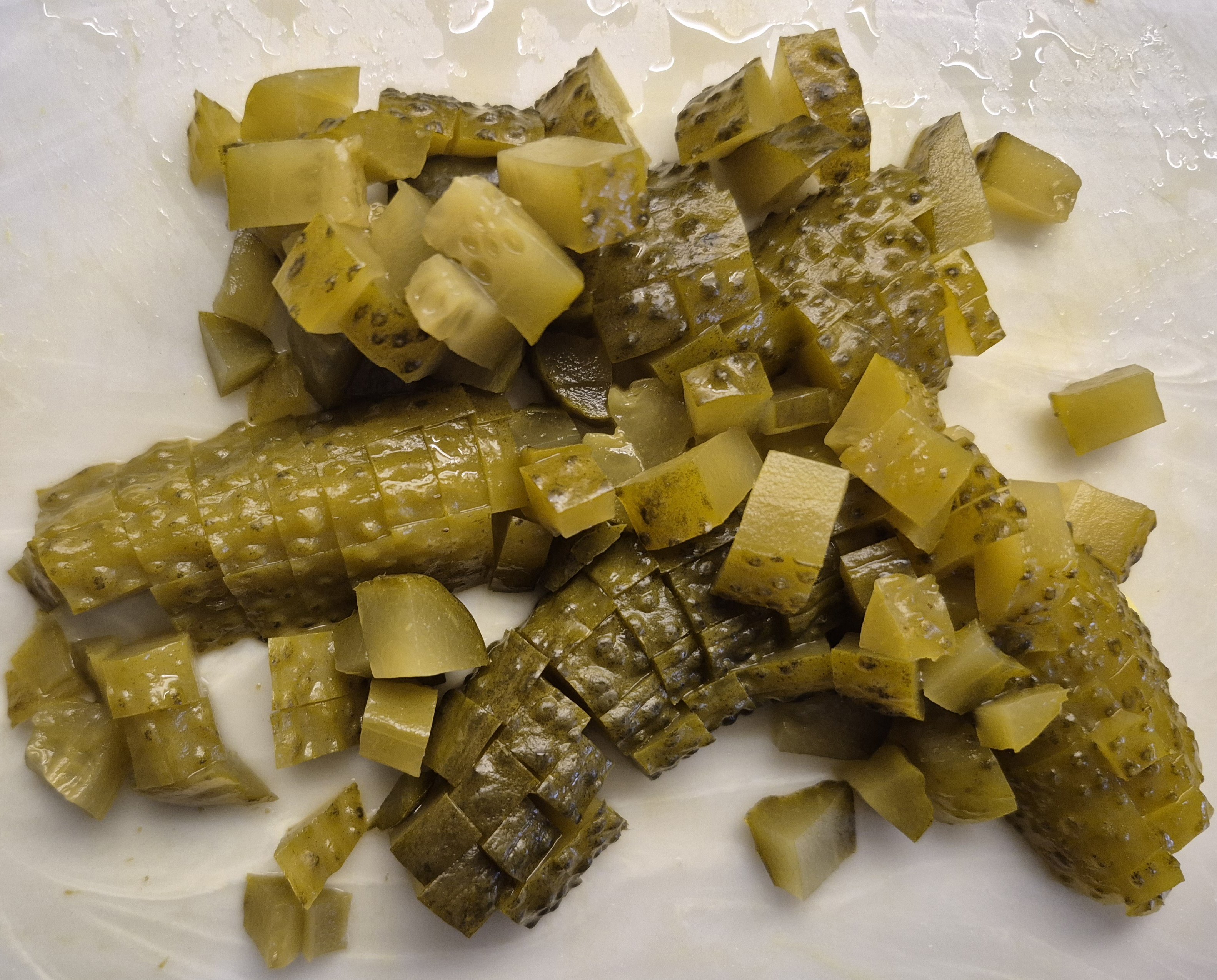 У нас буде олів'є з куркою. Етап відварювання інгредієнтів в кроках приготування пропускаємо.
