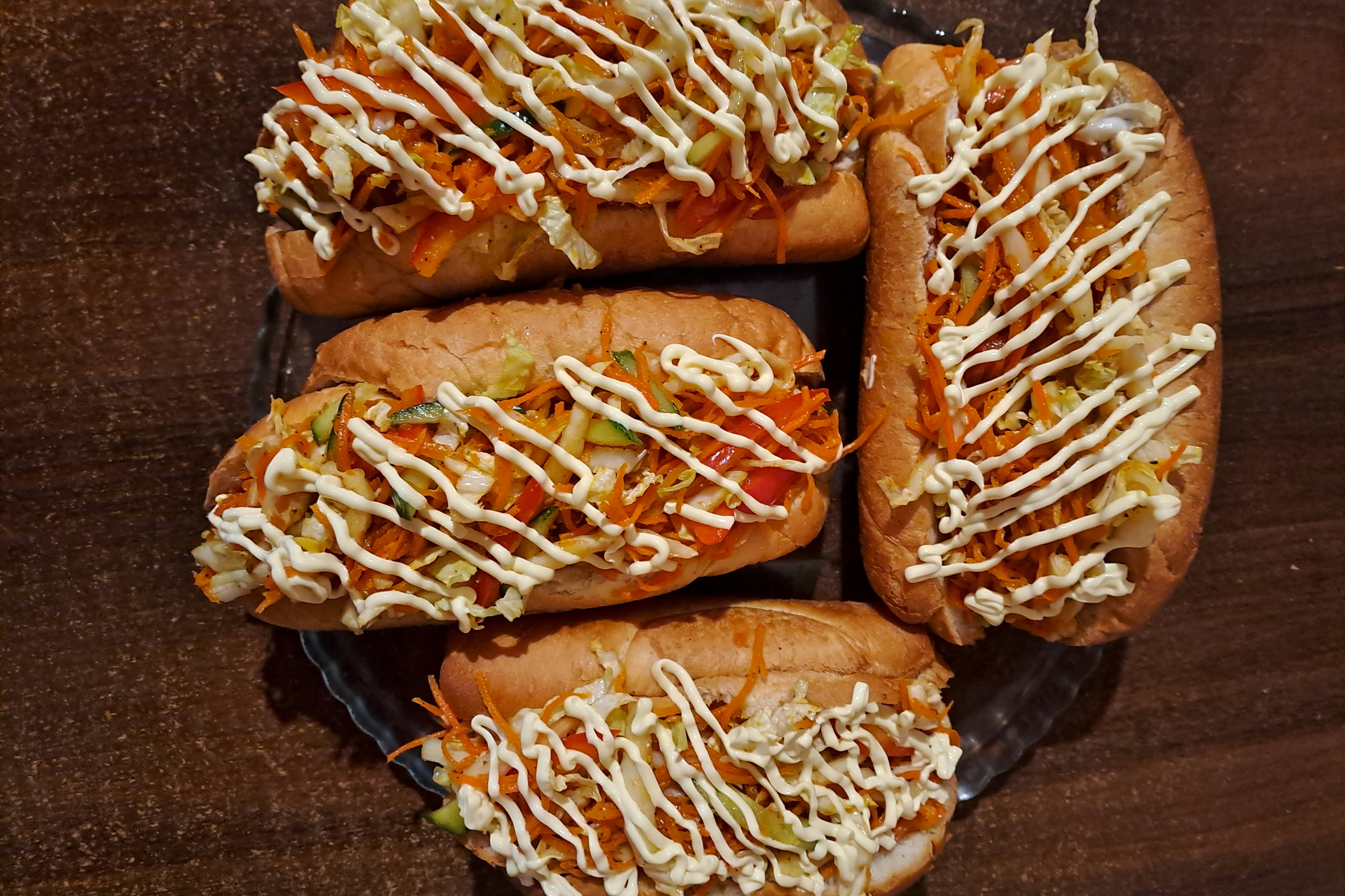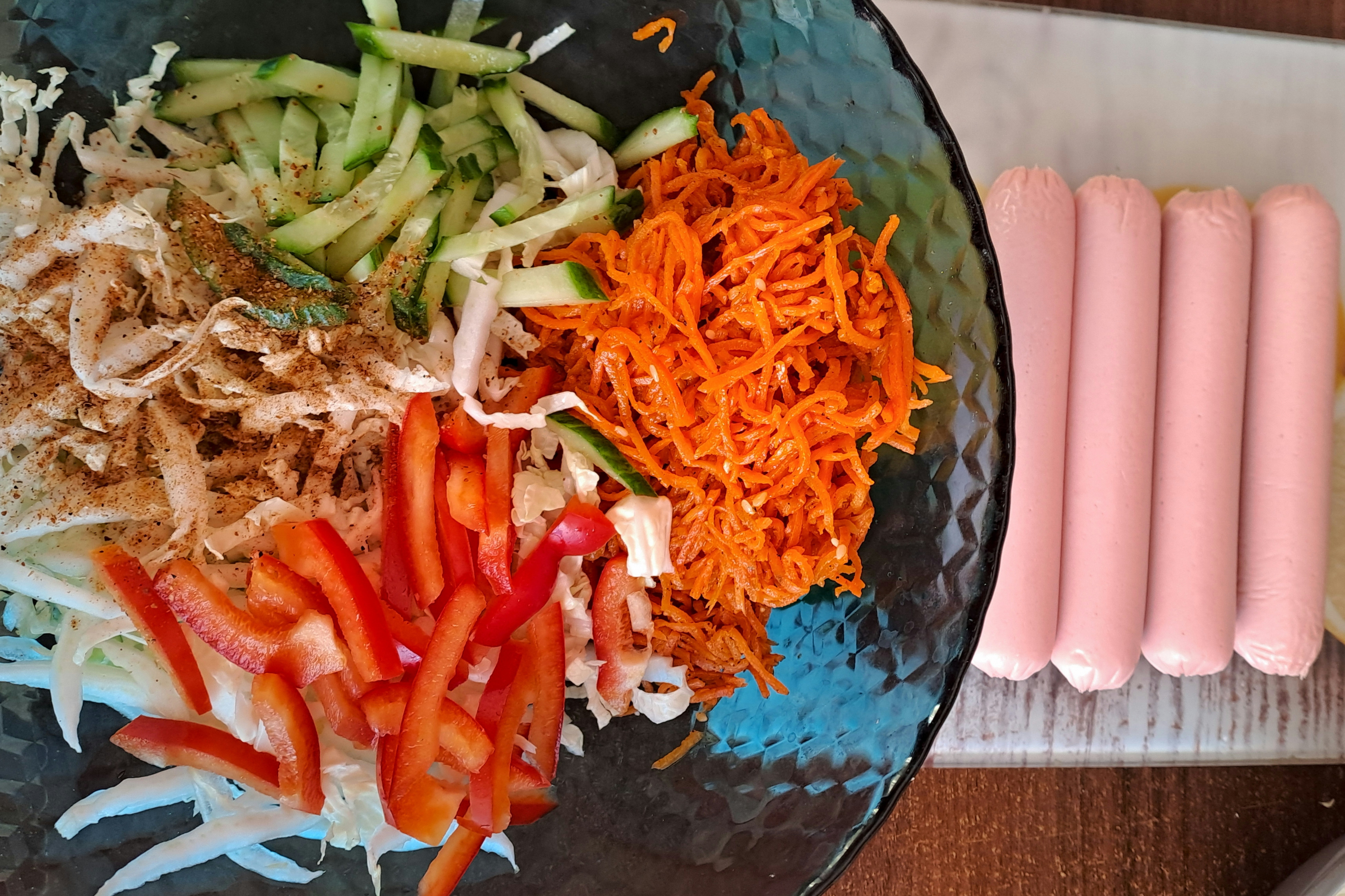 Коли немає часу довго готувати, виручає цей рецепт, адже він дуже швидкий, — так про домашні хот-доги пише авторка Оксана Семенчук. У нас буде хот-дог з корейською морквою та овочевим салатом. Сосиски попередньо відварюємо або обсмажуємо.
