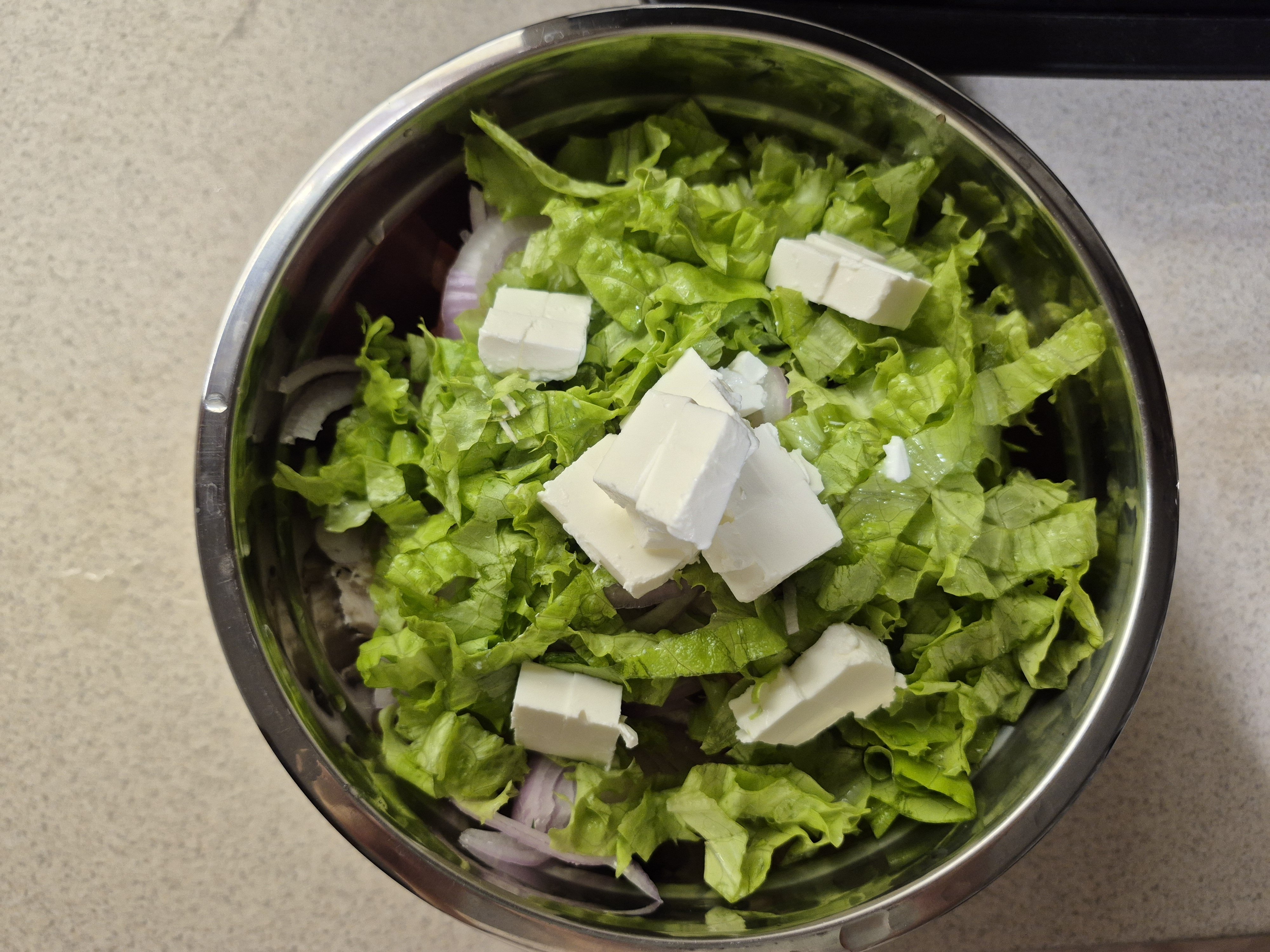 Пропонуємо зробити грецький салат з фетою, але з крем-сиром буде теж смачно.