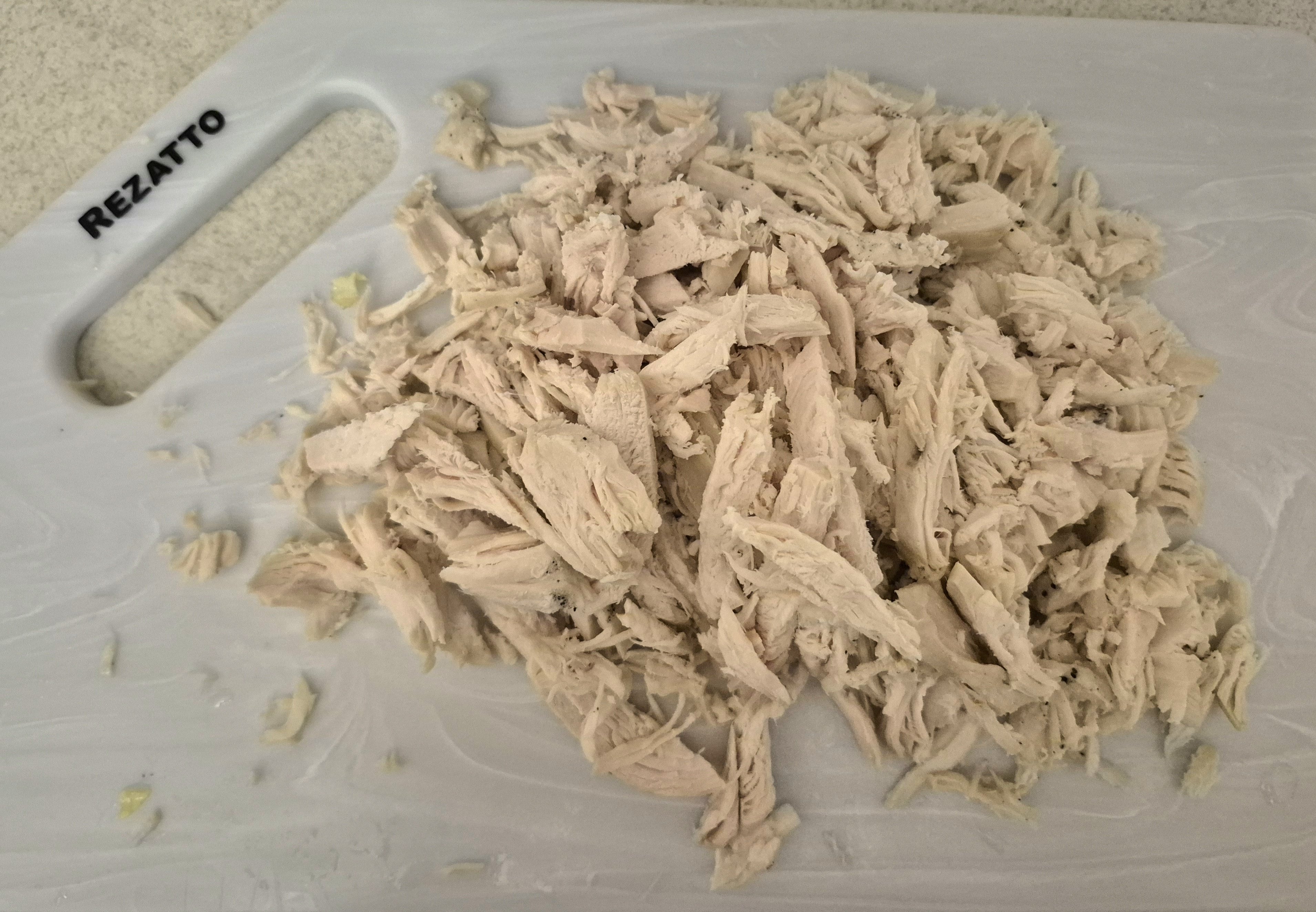 Салат з куркою і пекінською капустою починається з відварювання філе. Вари куряче філе на середньому вогні в підсоленій воді.