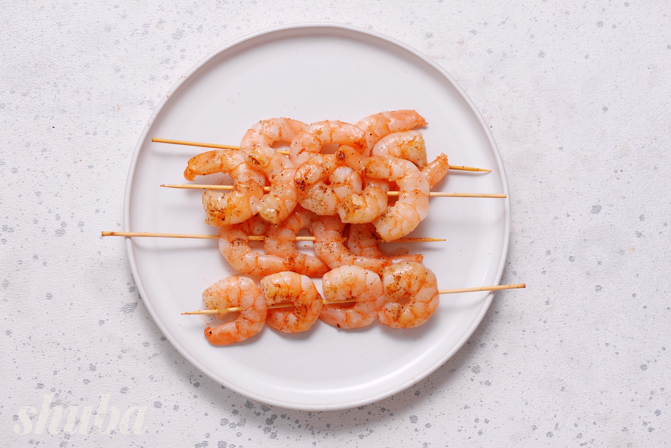 Креветки злегка посоли й поперчи. Виклади на розігрітий гриль або сковороду. Готуй по кілька хвилин з кожного боку, доки вони стануть рожевими.