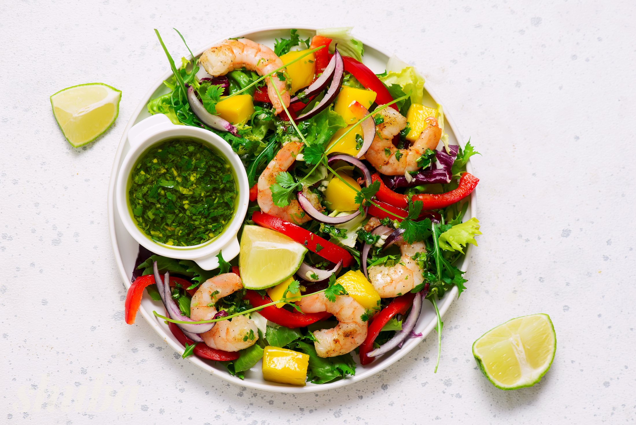 Салат із креветками й манго поєднує соковиту солодкість фруктів, хрумкі овочі та теплі обсмажені морепродукти. А лаймова заправка з медом та кінзою додасть страві яскравої кислинки. Цей теплий салат можна подавати до святкового столу.