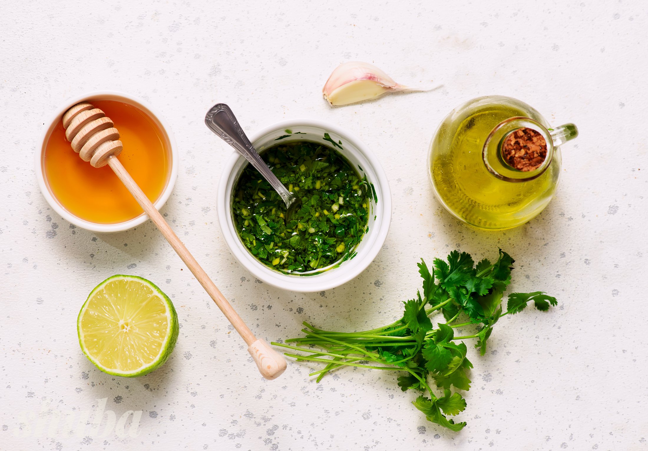 У невеликій мисці з’єднай сік лайма, оливкову олію, мед, подрібнений часник і кінзу. Перемішай до однорідної консистенції.