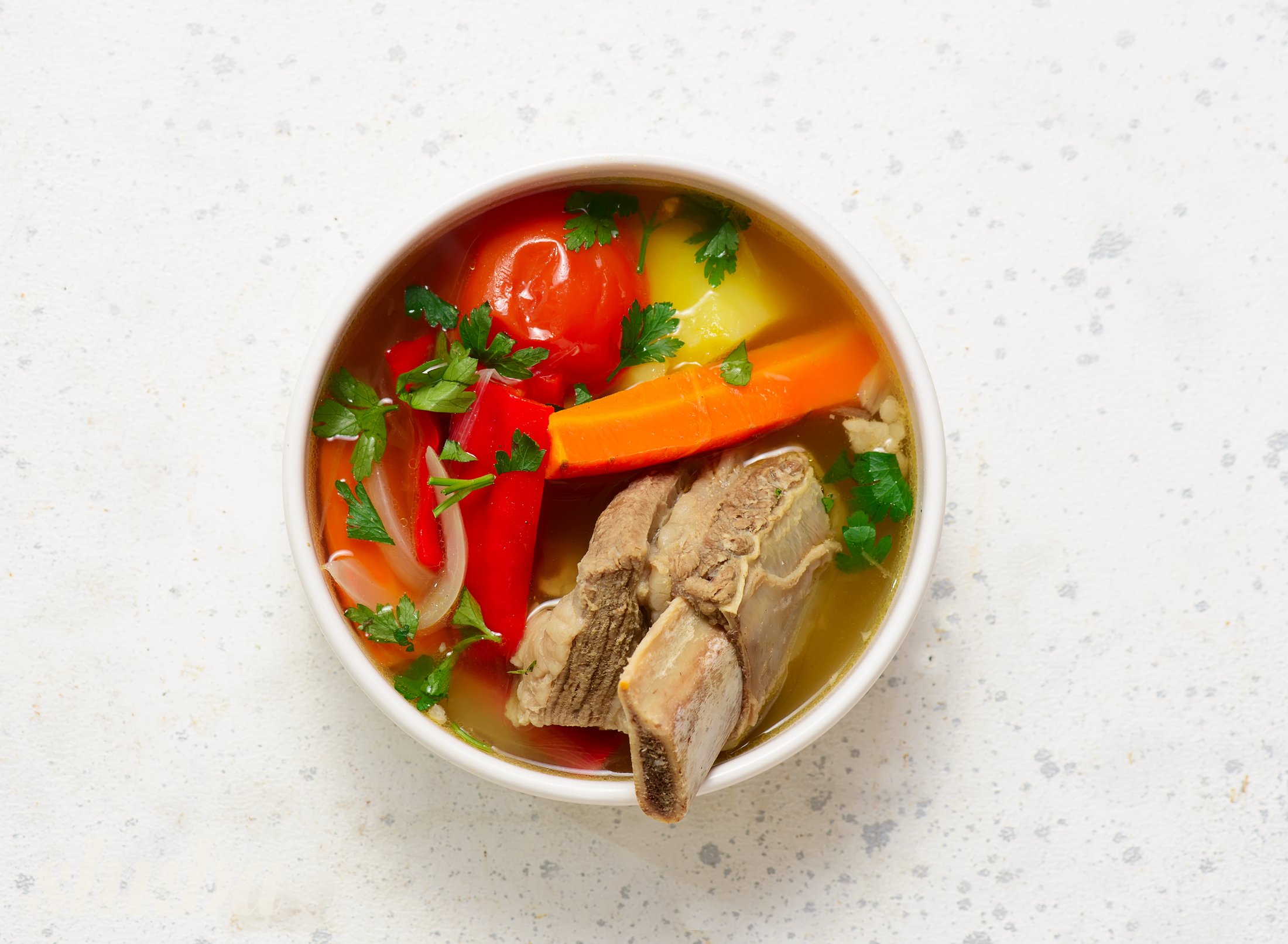 Наваристість та смак шурпи залежить від мʼяса, яке ти обереш. Ми радимо яловичі ребра або грудинку. Нарізка всіх продуктів має бути грубою, великими шматками. Тривале варіння також важлива частина приготування, завдяки цьому вийде насичений бульйон.