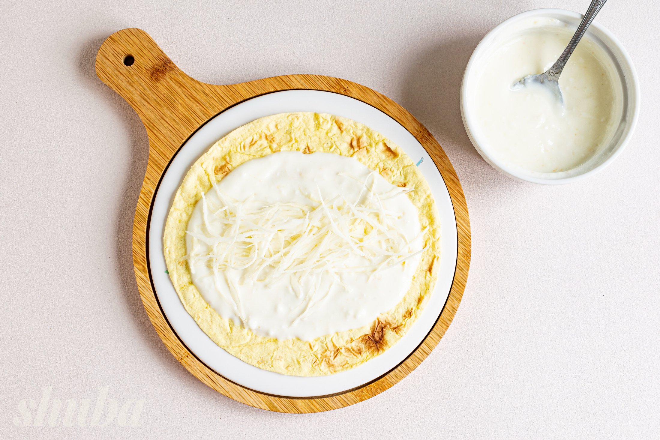 Кукурудзяні або пшеничні тортильї розігрій на сухій сковороді або в мікрохвильовій печі до м’якості та еластичності, щоб вони не ламалися під час наповнення.