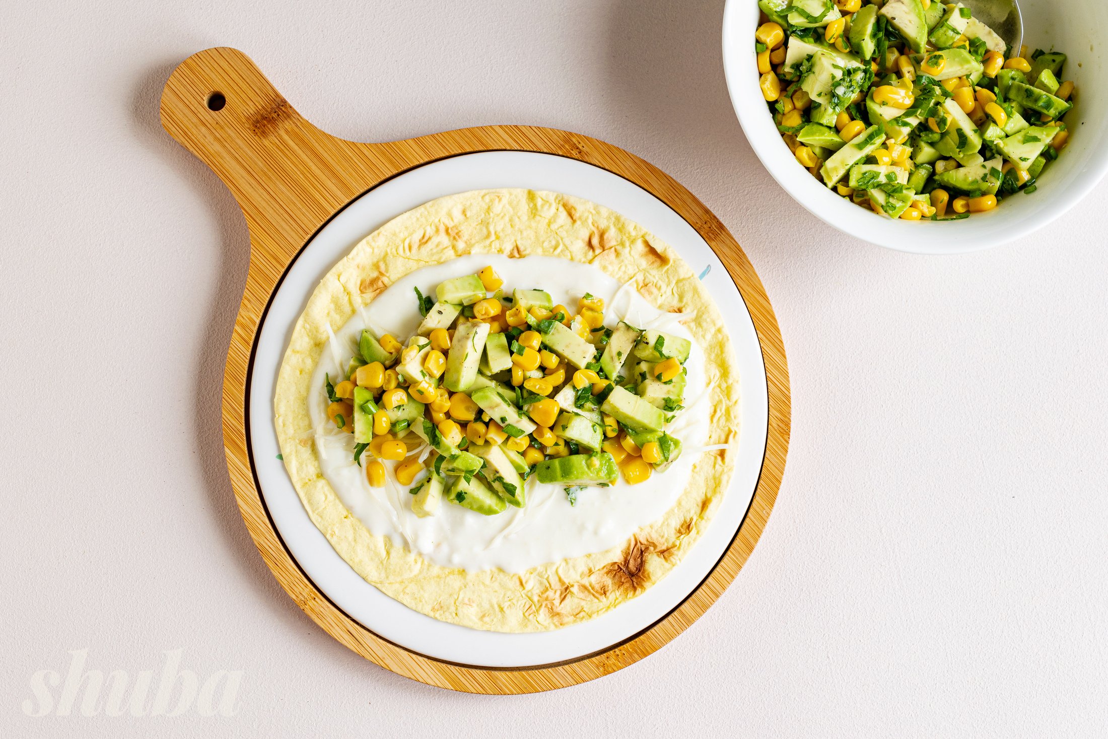 Зверху рівномірно розподіли авокадо з кукурудзою та зеленню.