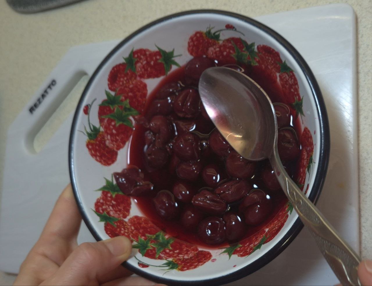 Крім вишневого соку, заявленого в списку інгредієнтів, можна взяти трохи ягід без кісточок.